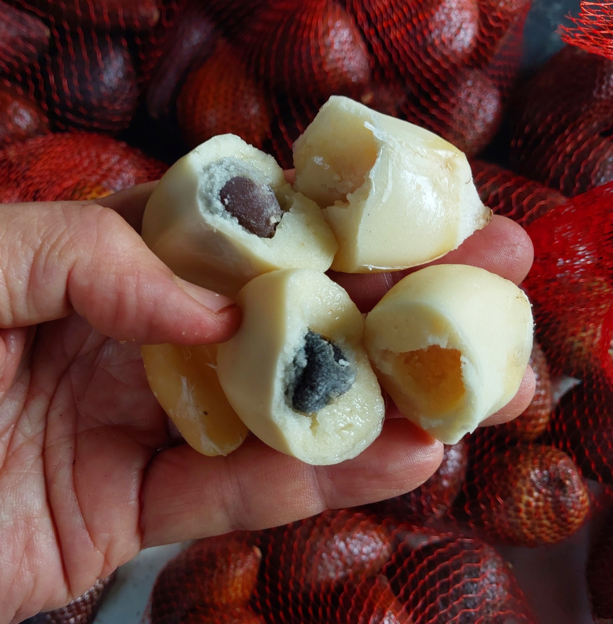 คัดแต่ลูกโต เนื้อไปทางหนา สุกจัดจะกรอบนุ่ม หวานไม่เปรี้ยว อาจมีฝาดนิด ๆ