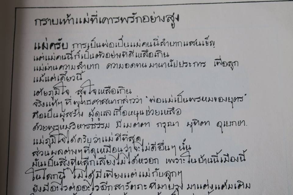 กราบแม่ผู้ให้กำเนิดและดูแลมา