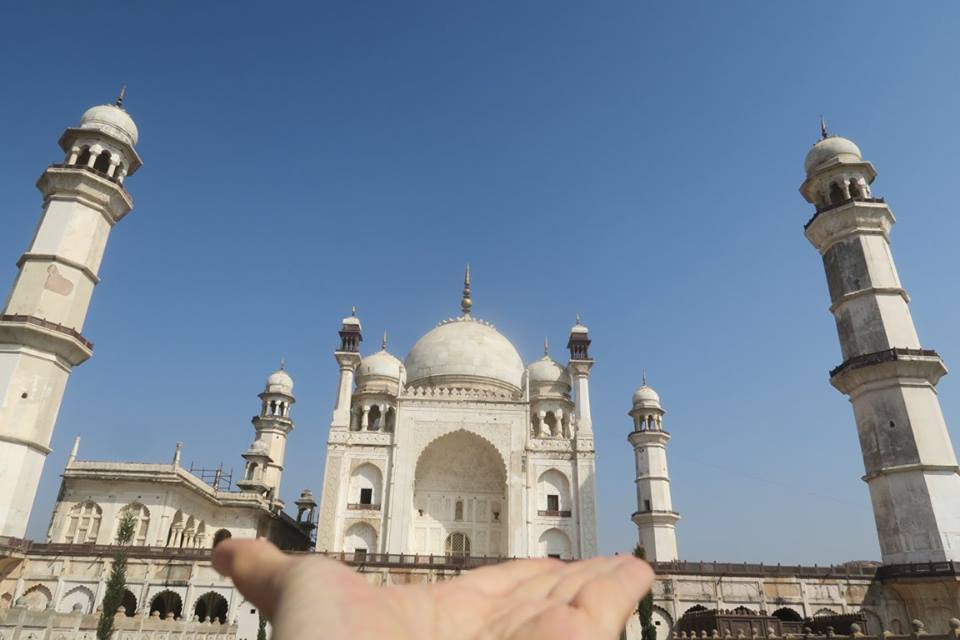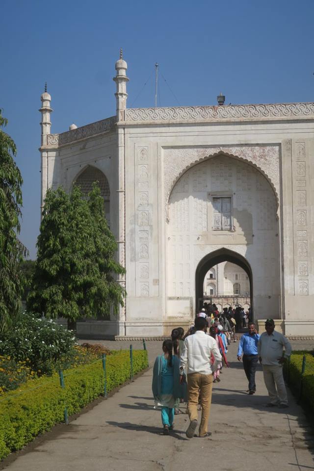 เท่าที่เคยผ่านมาเมืองนี้เมื่อถูกถามว่าไปไหม ทัชมฮาลน้อย ? ผมมักตอบว่าไม่ดีกว่า เพราะไปทัชมาฮาลที่อัครามาแล้ว แถมแถวนี้น่าจะเข้าถ้ำให่มากไว้ก่อนดีกว่า แต่คราวนี้มีเวลา จึงแวะกันเป็นรายการสุดท้าย ผมจำชื่ออย่างเป็นทางการและชื่อเล่นของทัชมาฮาลน้อยนี้ไมไ่ด้ รู้แต่ว่าสร้างโดยหลานชายของชาห์ จาฮาล ผู้สร้างทัชมาฮาลให้พระนางมุมตัส มเหสีที่ล่วงลับ แล้วถูกเอารังเซ็บลูกชาย จับขังตะรางให้ได้นั่งดูจนสุดชีวิต ในขณะที่ลูกชายคนหนึ่งของเอารังเซ็บที่ถูกส่งมาปกครองเอารังคบาด ที่หมายถึงนครแห่งเอารังเซ็บ มีความรักแม่และระลึกถึงปู่ จึงสร้างสุสานนี้เพื่อฝังแม่ซึ่งเป็นเมียคนหนึ่งของเอารังเซ็บ ตามต้นแบบของปู่ที่สร้างให้ย่า