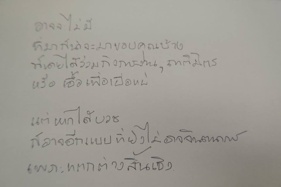 จากนั้นโยนโจทย์ให้แต่ละคนคิดของเองว่าหากจะอยู่ถึงเมื่อ ๘๐ ปี แล้วอยากให้วันนี้มีการฉลองอย่างไร ใครมาบ้าง แล้วเขาจะกล่าวถึงเราอย่าไร