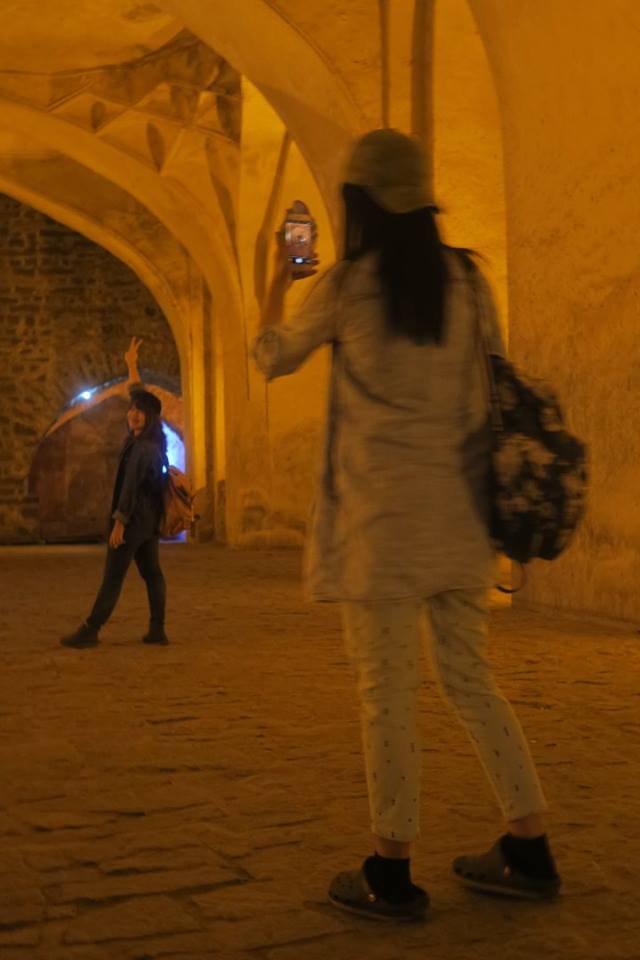 อ้อ ซอกซุ้มที่เป็นเหลี่ยมมุมตลอดรายทางนี้ เขาบอกว่าสามารถกระซิบ-ส่งสัญญาณเป็นทอด ๆ จากปากประตูปราการส่งไปจนถึงยอดปราสาทราชวังว่า แขกมาหรือข้าศึกมาด้วยนะครับ.