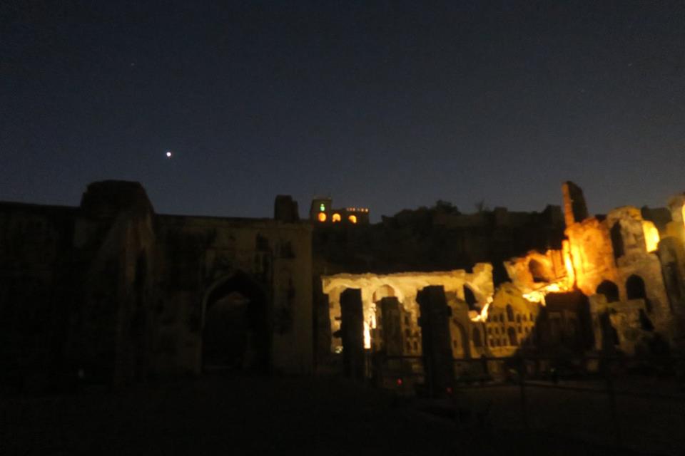 ไปดูแสงสีเสียงที่ป้อมนี้ที่ว่ากันว่าใหญ่มากที่สุดแห่งหนึ่ง เป็นป้อมปราการแห่งนครที่รุ่งเรืองมากเมื่อ ๕๐๐ ปีก่อน เพราะที่นี้เป็นแหล่ง "เพชร" สำคัญของโลก ก่อนหน้าที่จะพบว่าในอาฟริกาก็มี พบกันที่อินเดียแถบนี้ก่อนเพื่อน และเหมืองเพชรที่นี่ได้ชื่อ "ที่สุด"