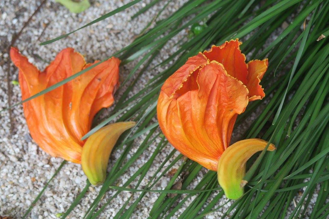 ส่วนดอกสีส้มที่ยังไม่รู้ชื่อทั้ง ๓ ดอก ยังไม่ร่วง