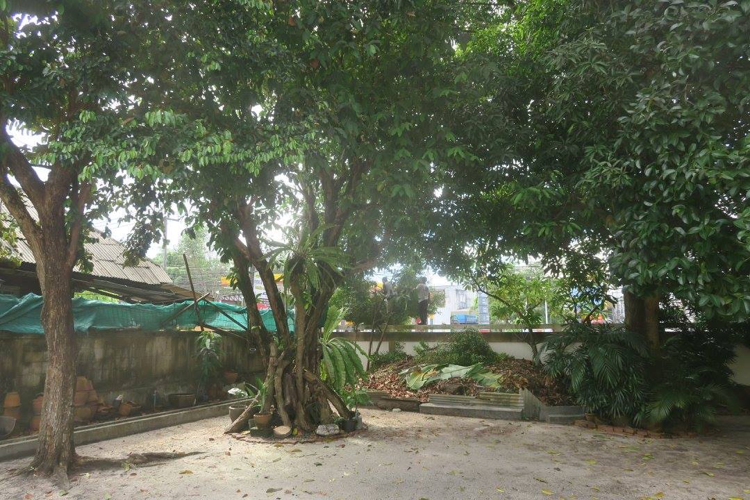 ใบและกิ่งไม้ทังหมด เอาไปกองไว้รอหมักเป็นปุ๋ยที่โคนชมพู่แดง มะมุด มังคุด มะม่วง แอปเปิ้ลเมืองไทย ที่คุณตาคุณป้า น้าพา แม่ ปลูกไว้ตรงชายกำแพง.