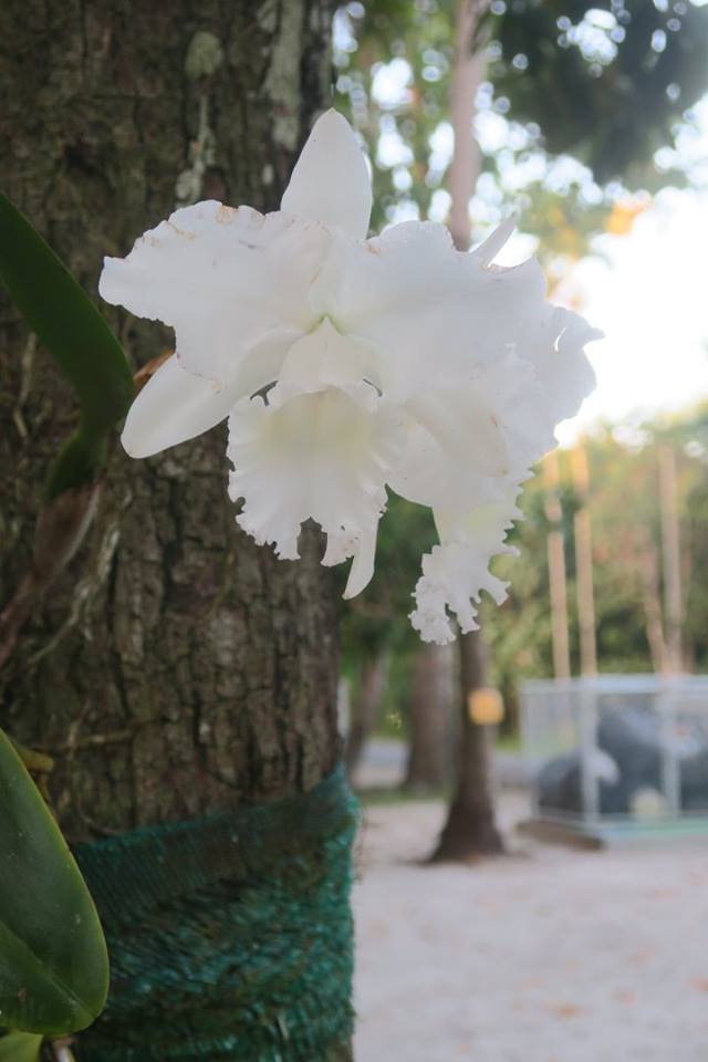 แคทลียาดอกขาวสะอ้านสวยที่เกาะต้นมังคุดอยู่ ๒ กอ กำลังบานเต็มที่ และภีมก็น่าจะได้ชมและดมด้วยแล้วเมื่อไม่กี่วันนี้ มีบางดอกเหี่ยวรอร่วงตาม ๆ กันไปไม่ต่างจากภีม