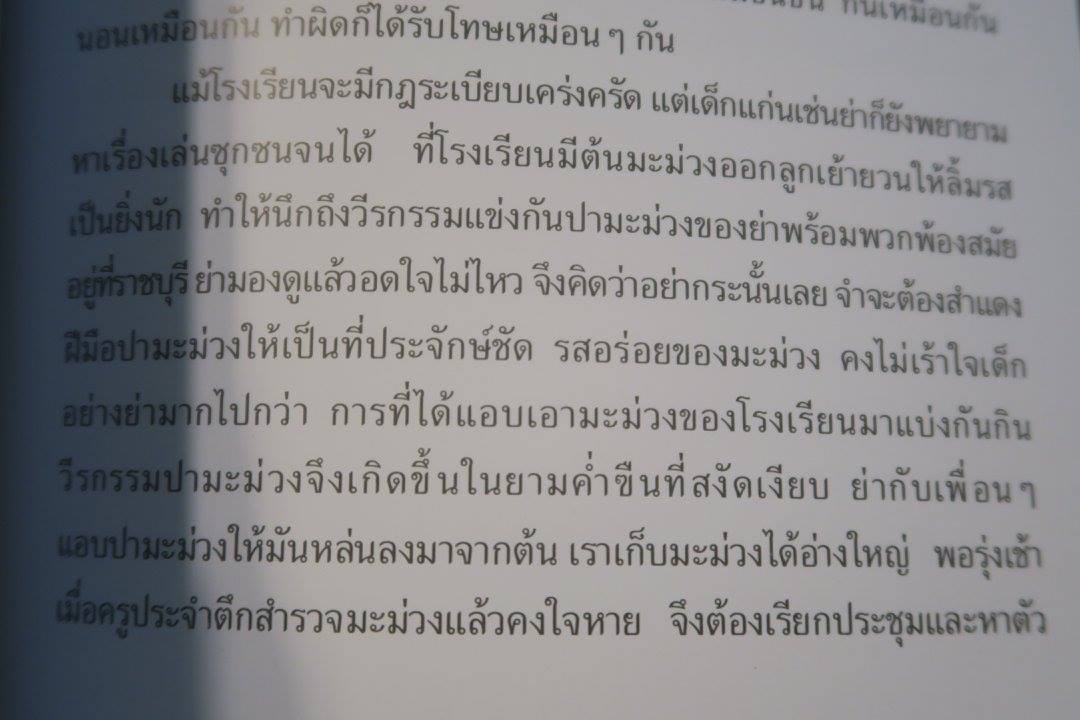 ส่วนเรื่องตั้งก๊วนขี่จักรยานเที่ยวทั่วเมืองนคร ถึงบ้านตาล-ยวนแหลที่แม่ชอบเล่านั้น อาลีย์บอกว่าไม่ได้ไปด้วย เพราะแว่วว่ามี "คนชาย" ไปด้วย อันนี้เต้ยไม่ใคร่จะอยากเชื่อเท่าไหร่ แต่ก็ต้องเชื่อ
