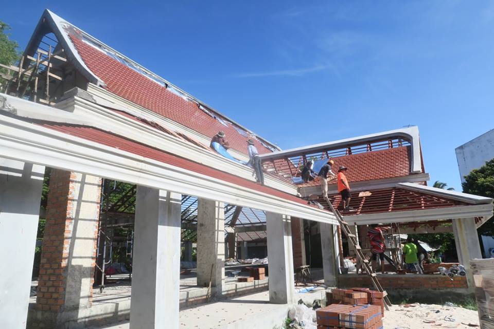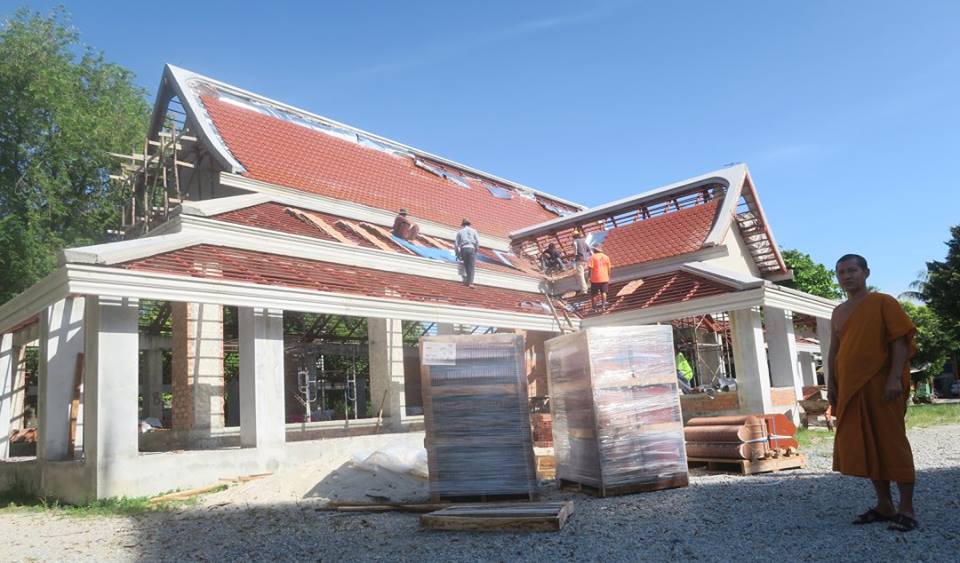 แม่ครับ เขาเริ่มมุงหลังคาโรงธรรมที่ศรีทวีแล้ว