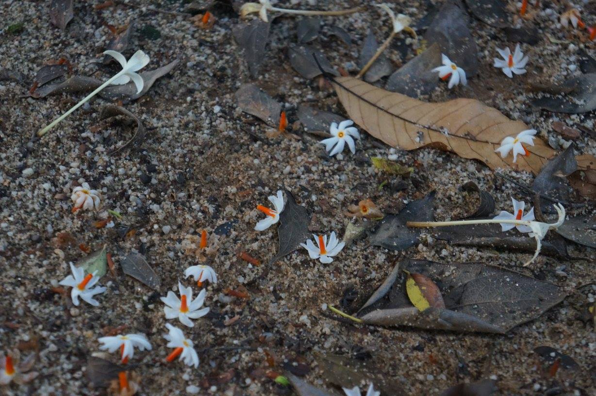 ที่มีกาสะลองและกรรณิการ์โรยรองอยู่เต็มพื้น