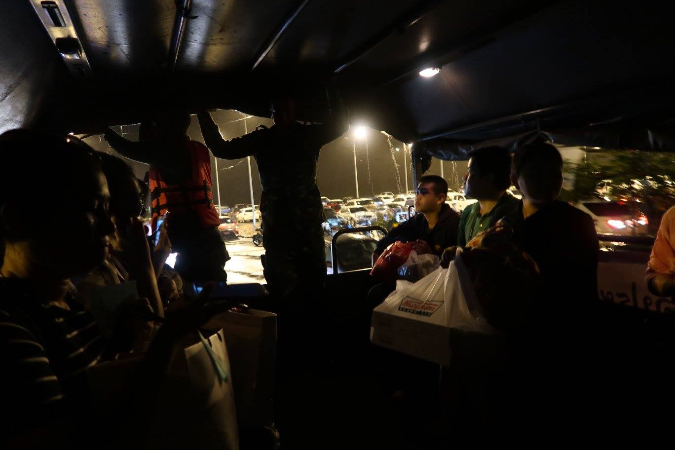 "แรกบ่ายผมเกือบตาย คนหญิงคนนึงให้ไปส่งที่ประตูขาว เข้าไม่ได้ แต่แกอิให้เข้าไปส่งให้ถึงบ้านให้ได้ มึน้ำเต็มซอย ผมวนทั้งคูขวางถึงกัลยาณี แกกลัวเกือกเปียก แต่อิเข้าบ้าที่กลางซอยที่น้ำท่วมหนัก สุดท้ายผมเสนอให้ไปเดินเล่นที่โอเชี่ยนรอน้ำลด แกก็ยอม"