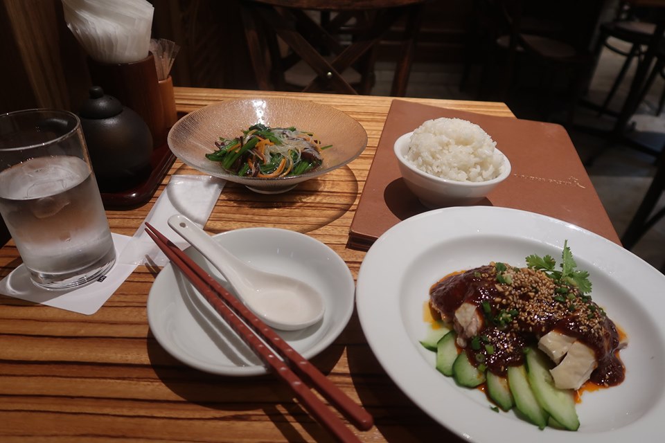 กินเย็นที่ร้านแถวกินซ่า มีข้าวไก่เสฉวนกับผักผักรวม