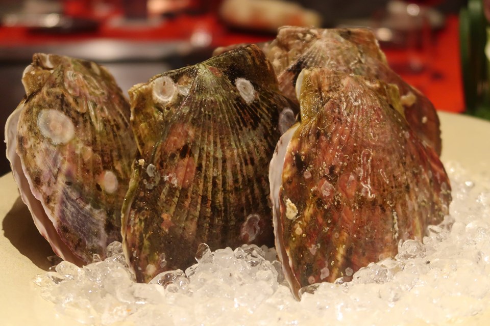 หลังจบไข่ปลาคาเวียร์ เขาก็เอาหอยเชลล์แอออโมรินี้มาย่าง
