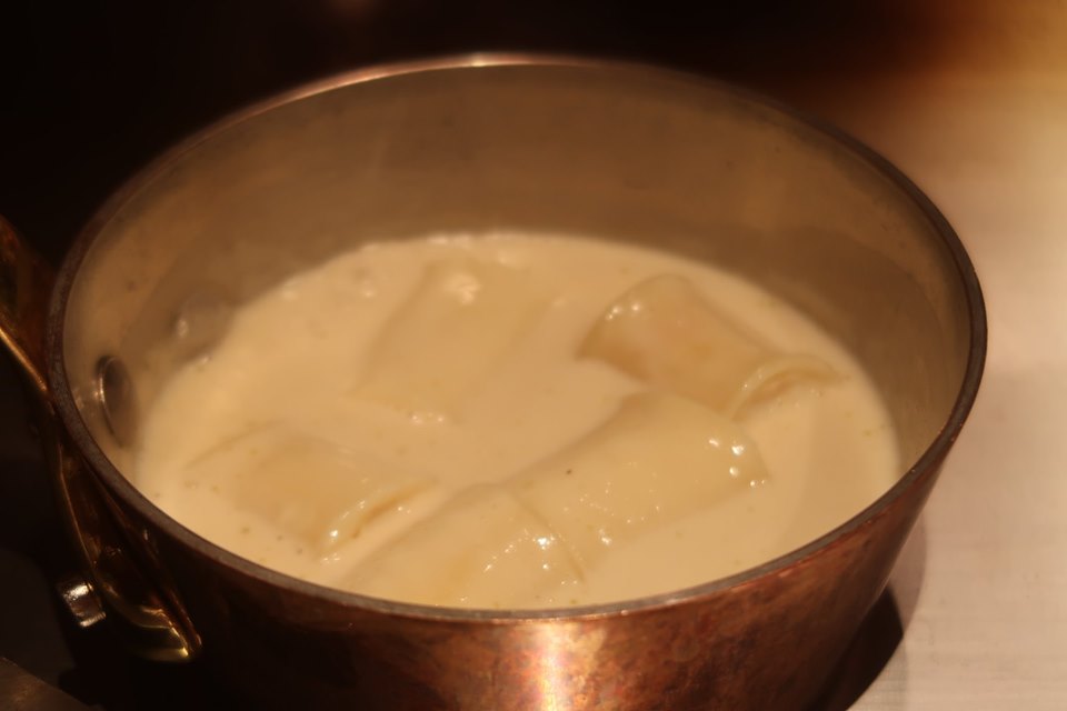 ก่อนกินเช้านี้ ยังไม่หายเมาหมัดมาจากเมื่อคืนนี้จานสามสี่ เขาจัดปลาไหลทะเลย่างกับลูกมะเดื่อกับตับเป็ดย่างบนหัวอะไรไม่รู้นี้ให้พอถึงจานห้า เฉพาะการจัดวางก็อิ่มเอมเขาย่างขาเจ้าปูใหญ่บนสาหร่ายทะเลใหญ่โรยสารพัดผักชีฝรั่งไทยลาว ฯลฯ จากนั้นก็อู่นเนื้อปูยัดใส้ในหลอดพาสต้ารอไว้พอปูสุก ก็แกะเนื้อออกมาวางย่างต่อพอสุกอีก ก็รูดเนื้อออกจากข้อ เอากลับไปวางไว้ในเปลือกจากนั้นเอาปูยัดใส่มาจัดใส่จานแล้วเอาขาปูที่แล่และสุกแล้วนั้นมาโปะบนแล้วไปคว้าเอาอะไรไม่รู้มาขูด ๆ โรย ๆ อย่างกะถูขี้มือออกมาเป็นเห็ดทรัฟเฟิล หรือสูกรมัทวะที่พระพุทธองค์ทรงรับเป็นมื้อสุดท้ายได้เวลาอาหารเช้าแล้วครับ ท้องมันร้องบอกว่าปูไม่อยู่แล้ว