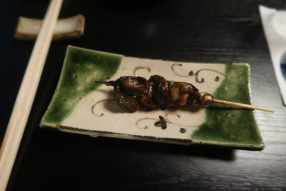 เรื่องกินสำหรับผมนั้น อะไรก็ได้ยิ่งพี่ ๆ สรรหามาให้กินฟรีแล้ว ชอบทั้งนั้น คืนนี้ มีคนแนะนำให้ไปกินเซ็ทปลาไหลในบ้านเก่าอายุกว่า ๑๐๐ ปีที่หลังซอกตึกแถว ๆ ร็อปป็องหงิ มีป้า ๆ น้า ๆ คอยดูแลกันแบบชวนสงสัยว่าเงอะ ๆ งะ ๆ อย่างญี่ปุ่นนี้ เขาเจริญกว่าไทยเราได้อย่างไรรายการอาหรเขาก็ล้วนปลาไหลที่เสียบไม้ย่างนั้น "เครื่องในปลาไหล ตับไต้ ไส้ พุงพร้อม" ส่วนซุปน้ำใส ก็ลูกชิ้นปลาไหลครับมีแม้กระดูกปลาไหลทอดกรอบ !!! กลับเมืองไทยคราวนี้ ครอบครัวนี้จะไหลกันทั้งตระกูลครับ