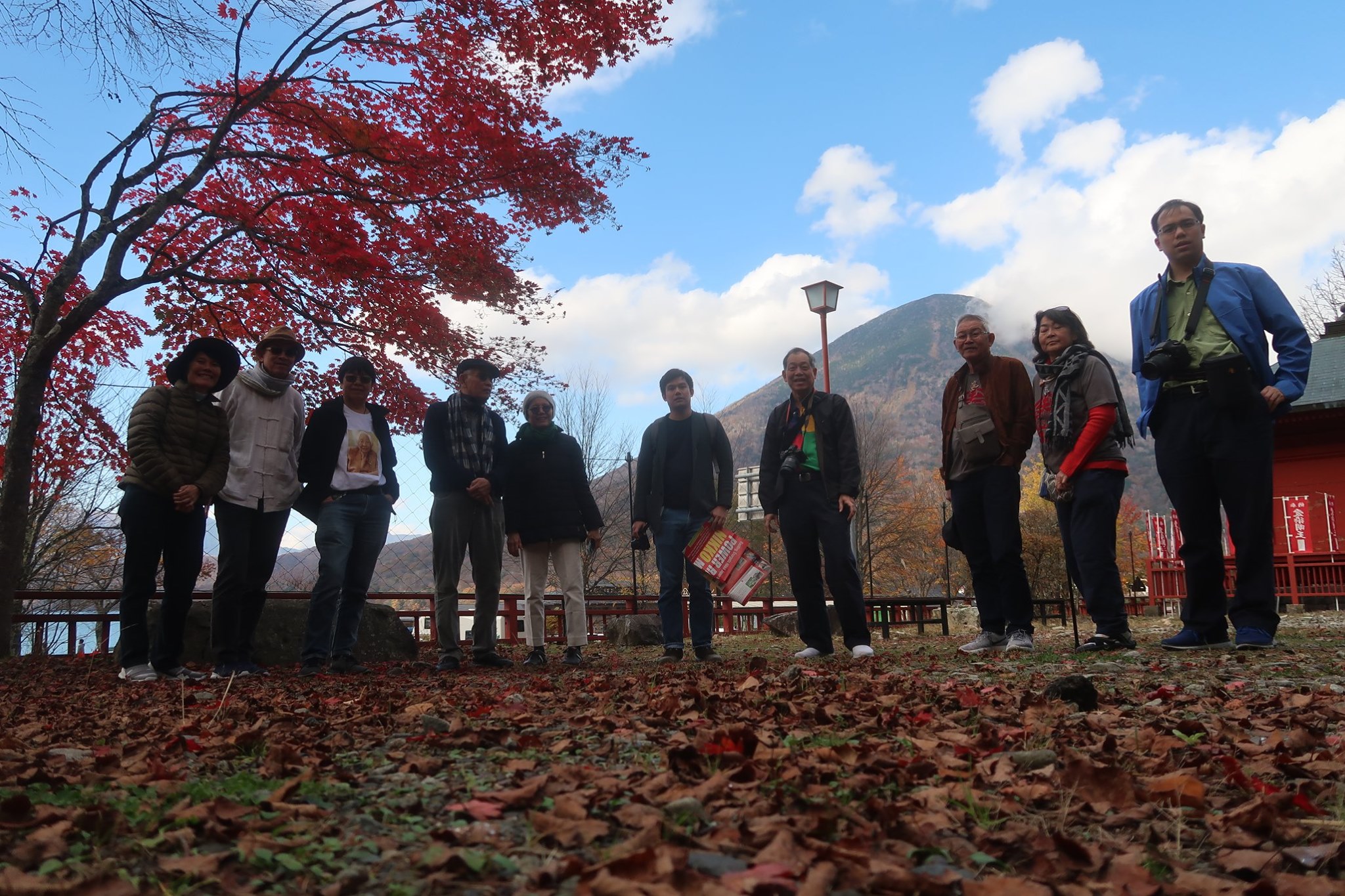 ในวัดที่ริมทะเลสาปชูเซ็นจิ ตรงใต้ต้นเมเปิ้ลแดงแช๊ดนั้นหากหามุมดี ๆ จะเห็นยอดเขานันไตอันศักดิ์สิทธิ์ได้ด้วยขณะที่ผมพยามต้อนพี่น้องให้เข้ากรอบภาพและกดได้เพียงภาพเดียวก็มีเจ้าหน้าที่วัดมาอาสาถ่ายให้เลื่อนพวกเราลงมาใต้ฐานเขาไปนิดนึงขณะที่ภาพแกที่ผมตั้งถ่าย ลูกเขาก็ตำลงมานิดหนึ่งเห็นใบไม้บนพื้นสวยไปอีกอย่างได้มาประมาณนี้ครับ