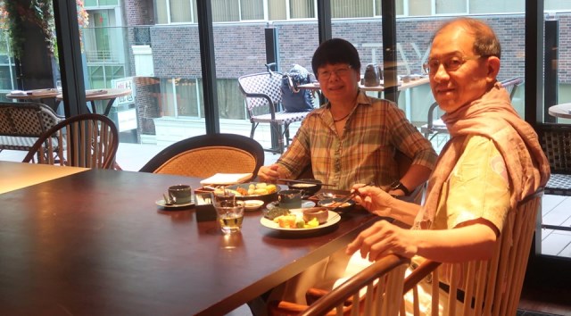 แหม่มแอนนาที่พวกเรายกบ้านท่าวังพร้อมอาหารและแม่บ้านให้เธออยู่คนเดียวเพื่อทำงานให้พวกเราตลอด ๙ วัน ถามว่าไปญี่ปุ่น อาหารการกินลำบากมากไหม ? อาหารเช้าเป็นอย่างไร ? "ลำบากมากเลย" คือคำตอบ เพราะว่าไม่รู้จะกินอะไร ตาลายไปหมดนี้คือที่กินลงไป ของเมื่อเช้าวานนี้ กับวานซืนนี้ จากที่เขาจัดวางไว้ให้เลือกครับ โดยพยายามรักษาสมดุลทั้ง ๕ หมู่อยู่ทุกเช้าได้บ้างไม่ได้บ้าง ร่างกายค่อยปรับเองอีกทีอารมณ์นำ สติปัญญากำกับไปตามประสาครับ