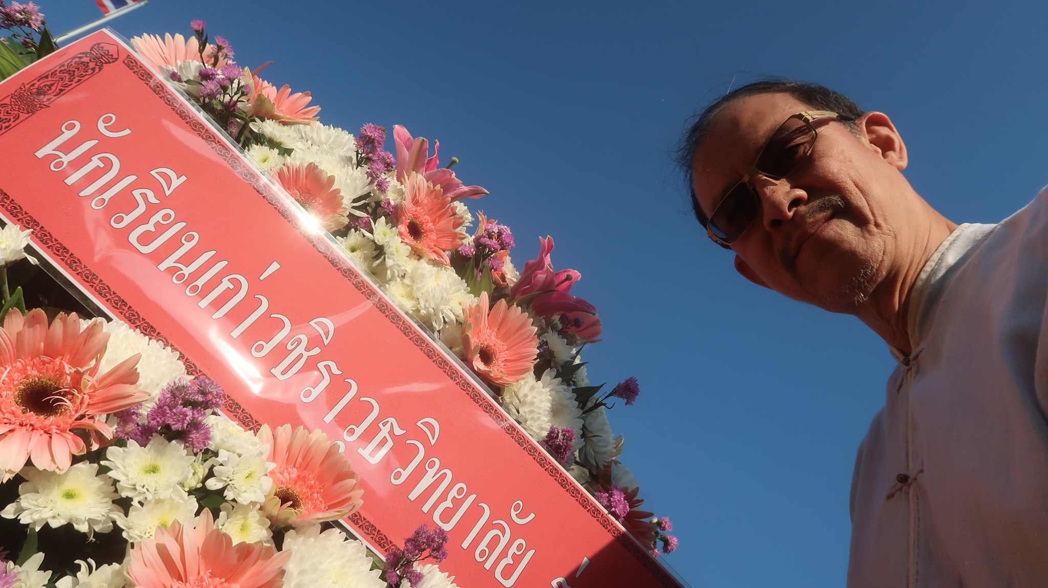 วันนี้ ที่ระลึกมหาวชิราวุธ ที่พวกเราทั้งหลายจะไปชุมนุมกันที่โรงเรียน ปีนี้ จังหวะได้ จึงตามพี่รุ่น ๔๖ ไปด้วยพอดีเพื่อนรุ่น ๔๗ ถวายบังคมกันแล้วจึง upgrade ไปเป็นคนถือพวงมาลาให้รุ่น ๔๖ ครับ ตอนนี้ เผ่นมานอนอยู่ที่ เฮือนฮักฮอดริมทางสู่นาฟ่อนแดนไกลชายป่าที่ออกจากวชิราวุธมาเรียนแพทย์เชียงใหม่แล้วออกไปทำพัฒนอนามัยชนบทกันที่นั่นเมื่อ ๔๐ ปีก่อนเพื่อพรุงนี้จะเข้าไปเยี่ยมพี่น้องลั๊วะตั้งแต่เช้าครับ