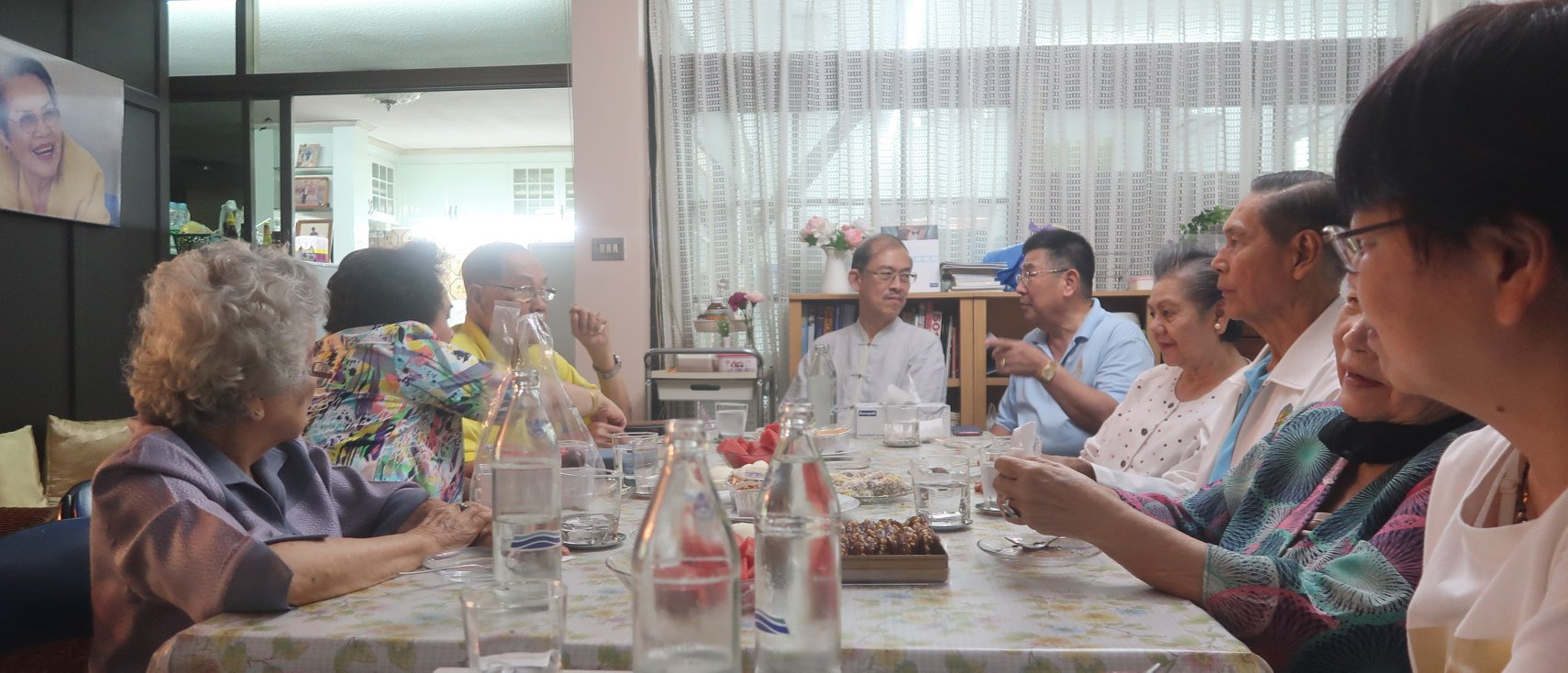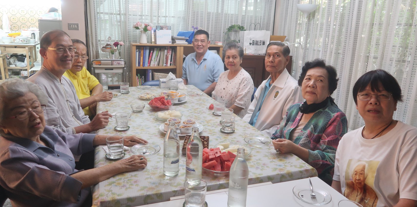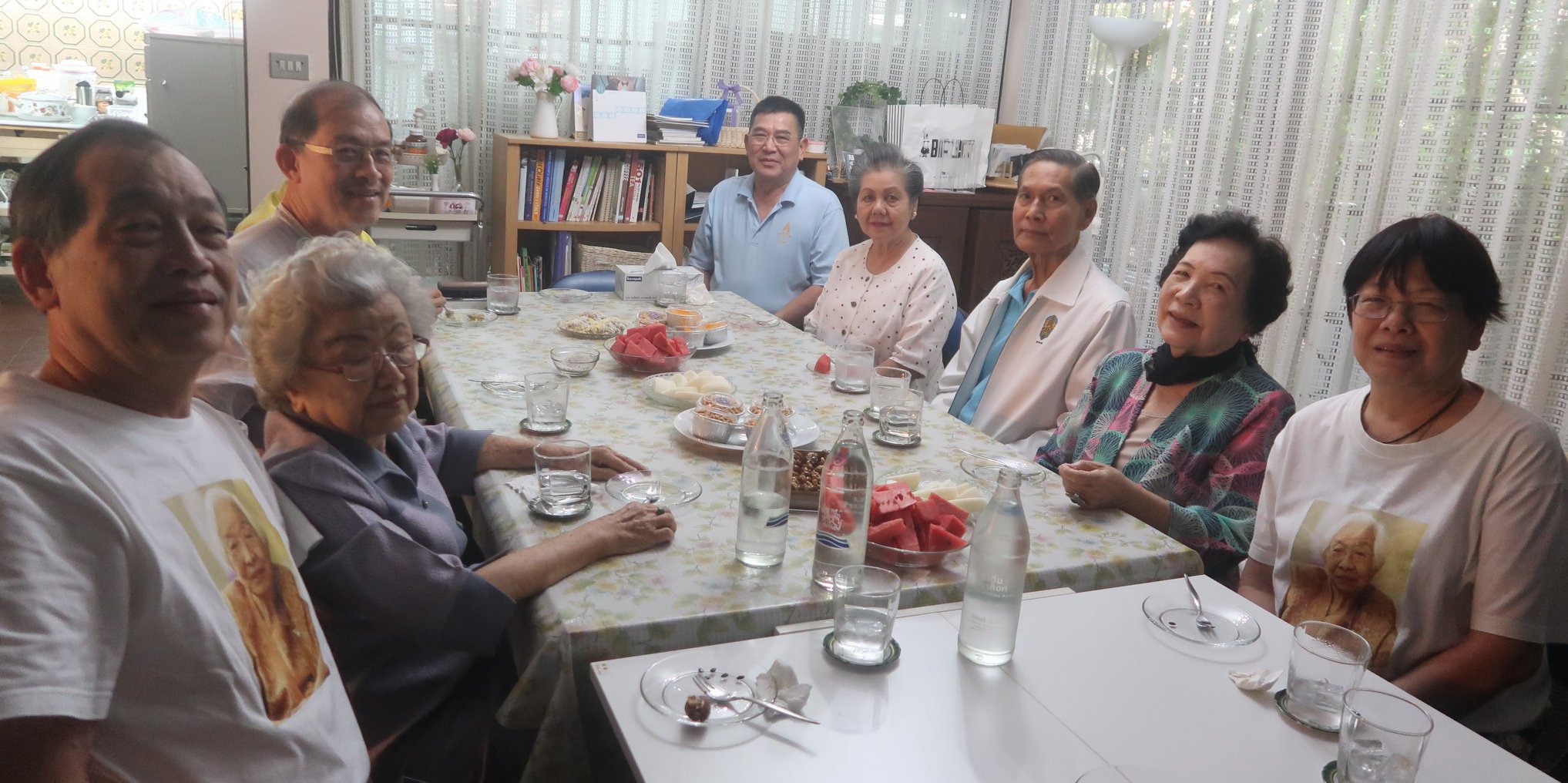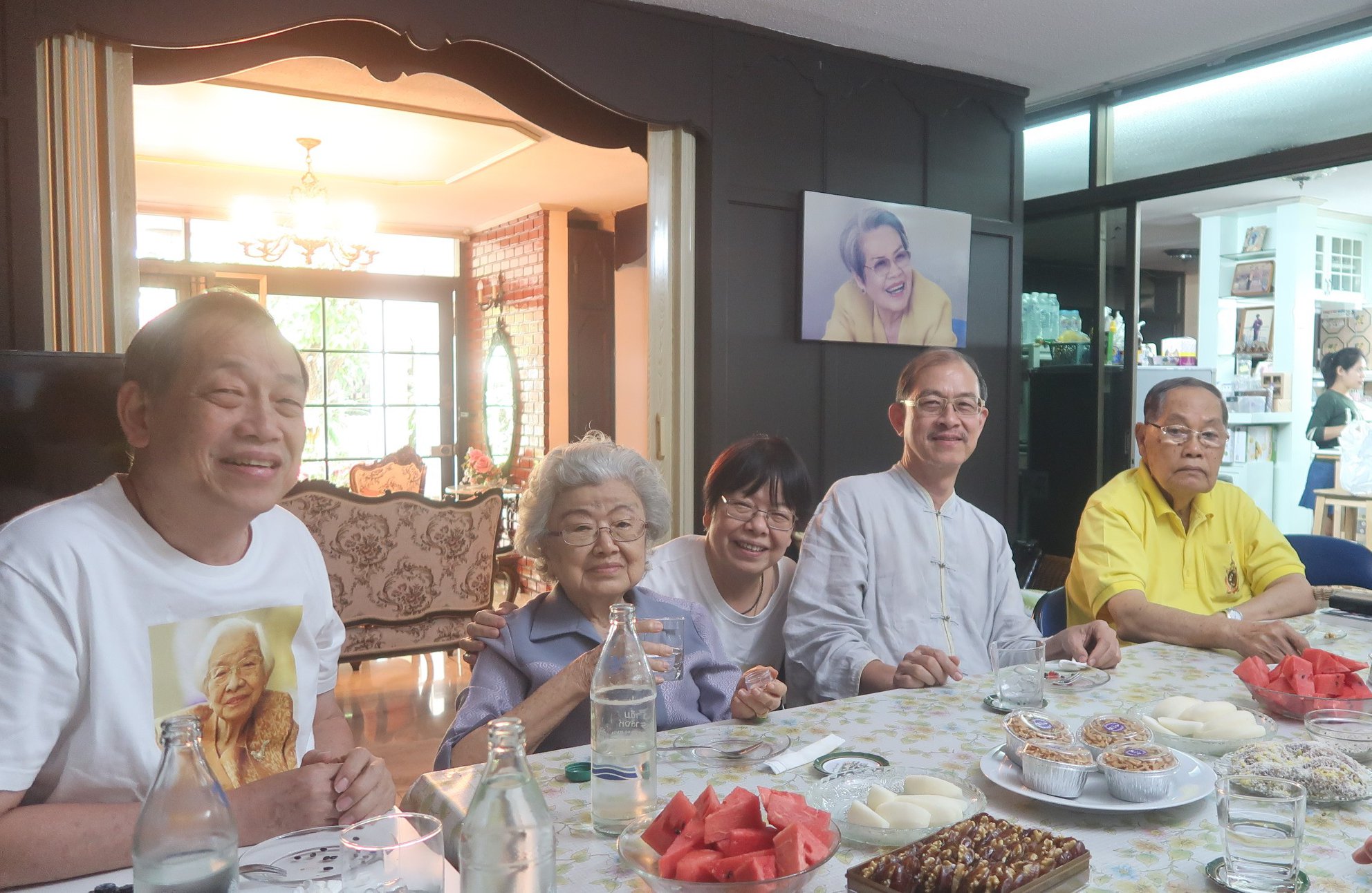 แม่ครับ เมื่อกลางวันนันนี้ น้า ๆ ลูกคุณตาหลวงเสนา กะ คุณยายเยี่ยมจิตต์ให้พาน้าพาไปกินข้าวกันที่บ้านเตาปูนเต้ยตามไปทีหลัง เพราะติดงานที่สวนโมกข์ น้าพาให้เอาหนังสือญี่ปุ่นบุก ที่ติดมือมาจากไอยูเดียที่อยุธยาของคุณ Pimpraphai Bisalputra ให้น้าอำพลเพียงเท่านั้นก็เป็นเรื่อง เกือบไม่ได้กินข้าวเพราะน้าอำพลเล่าถึงตอนญี่ปุ่นบุกอย่างออกรสแถมน้าอีก ๒ คนก็แย่งเล่าบ้าง พอพี่ตั๊นมาถึง ก็เล่าอีกตามสำนวนอาลีย์ แถมพี่ Kittisak Rathprasert อีกคน ไม่รู้กี่เรื่องเลยครับ พี่ตั๋งกับติ่ง ใส่เสื้อแม่ไปเจอกับอาลีย์ที่อยู่บนผนังบ้านด้วยครับ