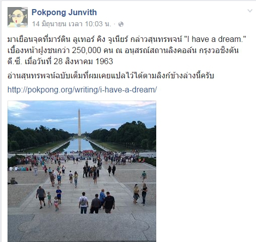 พ่อปกป้องที่ไปเดินอยู่ที่ The Mall กลางกรุงวอชิงตัน ดีซี ส่งนี้มาให้ทบทวน