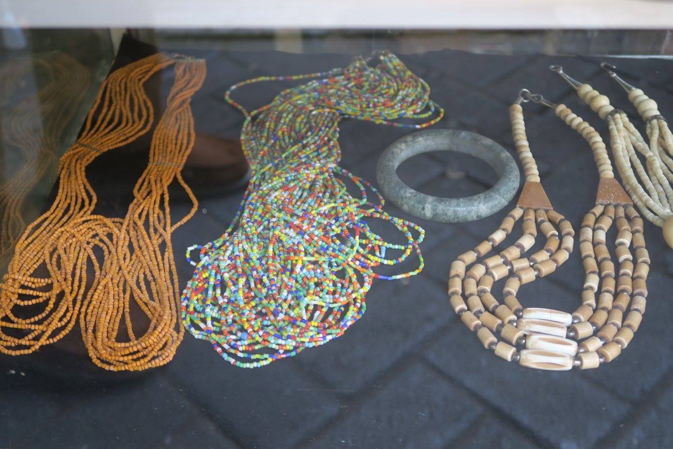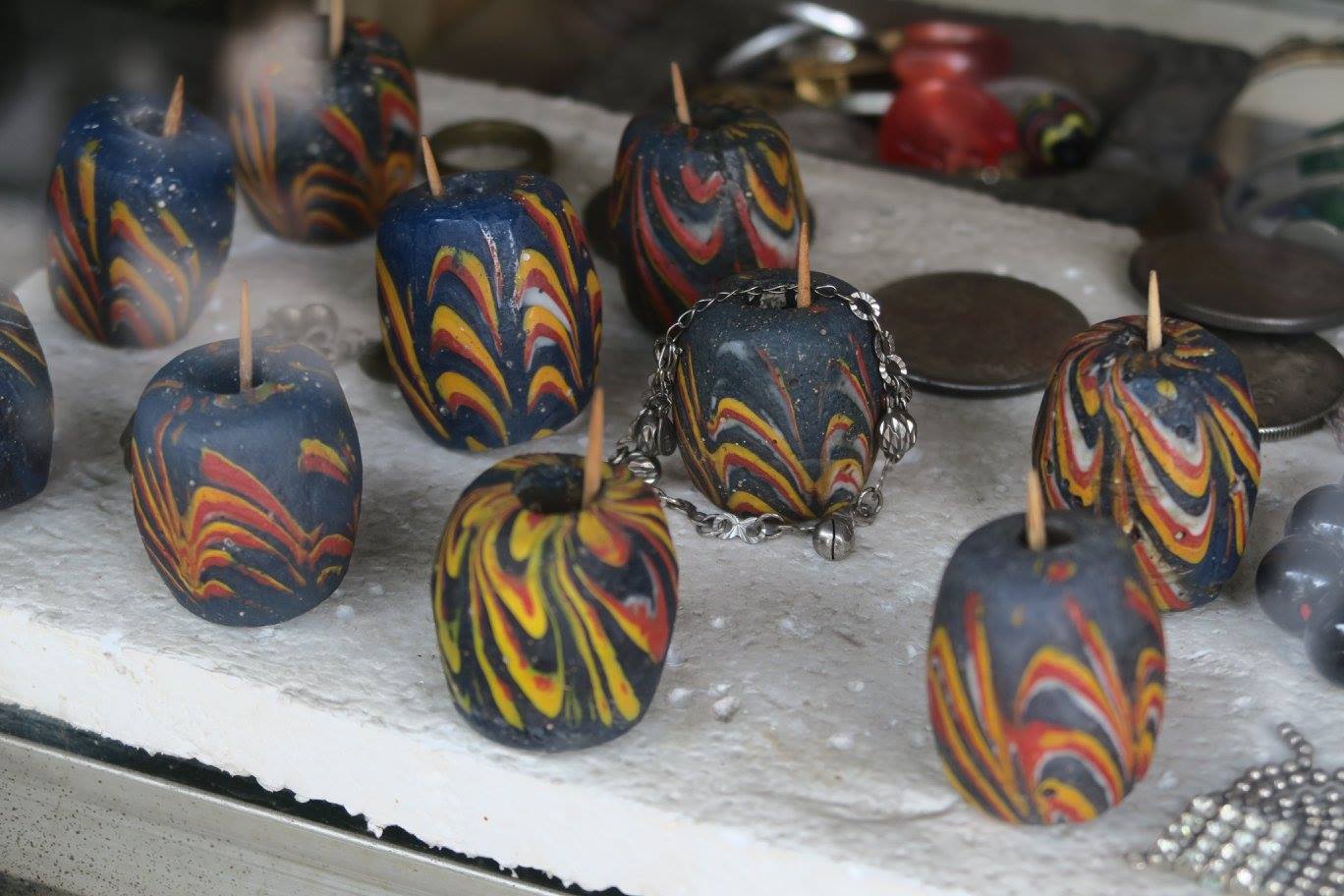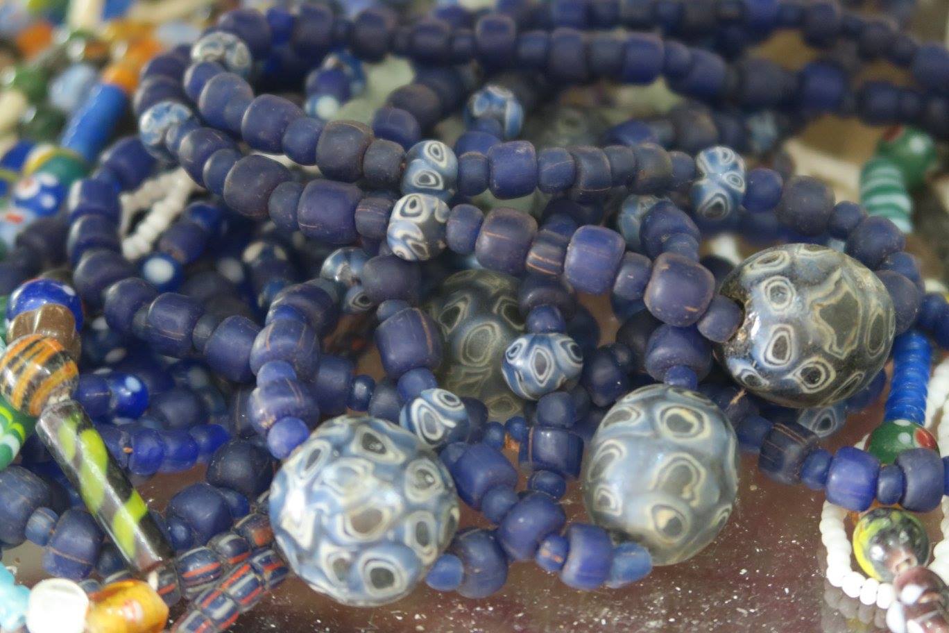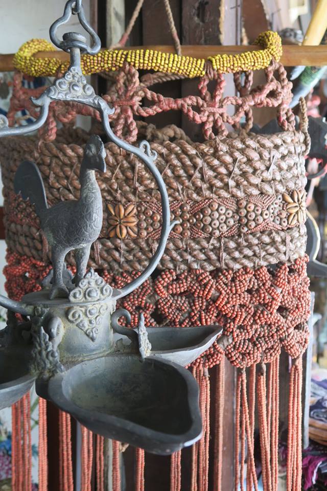 หลังร่วมพิธีมอบทุนการศึกษา SCG Sharing The Dream แล้ว พวกเรา ๗ คน มี อ.ศรีศักร พี่มัทนา พี่นิวัติ-พี่บี๋ พี่ติ่ง(แฟนที่วาณิช จรุงกิจอนันต์)) เฮียของตู่วีนัส แล้วก็คุณติ๊งสวัสดีฮอลิเดย์ ปลีกตัวไปแวะแผงขายของที่ทำเป็นว่าเก่าริมถนนสุราบายาที่ใคร ๆ ก็ชอบแวะมา นักสะสมลูกปัดสมัยก่อนเมื่อหลายสิบปีก่อน ก็มักจะมาเวียนหากันที่นี่ แต่ผมที่เคยมาพบว่าเป็นใหม่ทั้งนั้น ยกเว้นพวกผ้ากับเครื่องจักสาน รวมทั้งสายสร้อยร้อยลูกปัดของชนเผ่าที่ไม่เก่ามากแต่ก็นับเปํนส่วนหนึ่งของการศึกษาของผม