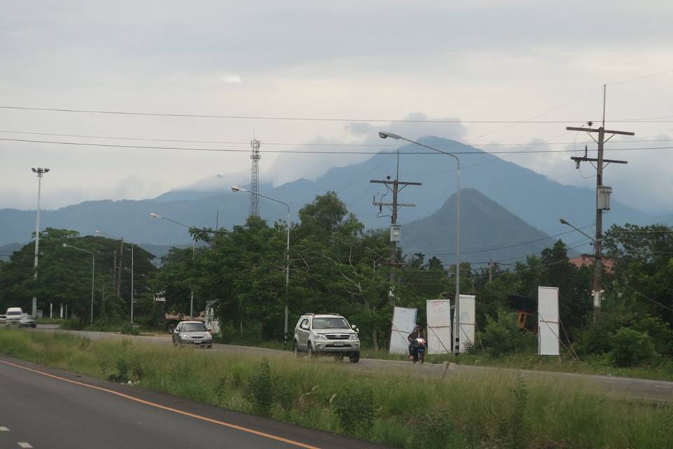 อ้อ ถนนจากบ้านไปสวน เลียบคลองชลประทาน เห็นยอดเขามหาชัยใต้ยอดเขาหลวงอย่างนี้เสมอ