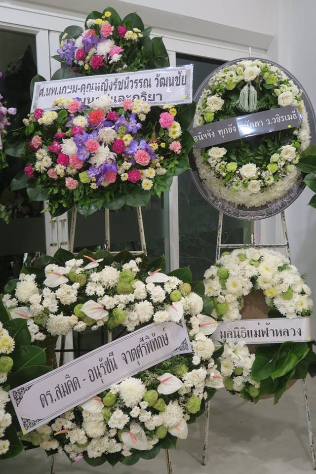 พี่ตั้วให้พี่เอ๊าะจัดดอกไม้แบบเรียบ ๆ เป็นไทย ๆ ตามที่แม่ชอบ และเราเคยจัดตอน ๘๐ ปีแม่ที่สยามสมาคม โดยพี่เอ๊าะยังรักษากุหลาบตามที่แม่ชอบไว้ด้วย