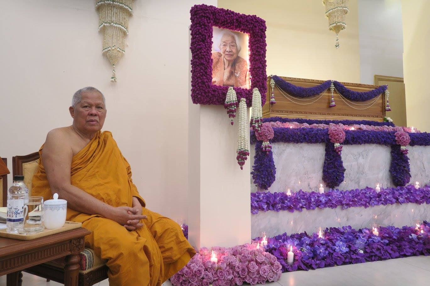 ส่วนองค์แสดงธรรมที่มีคนมาถามกันมากว่าท่านมาจากไหน ยงลูกตาผาด ที่กำลังจะเป็น MD ธนาคารกรุงไทย และ แม่กับพ่อช่วยดูแลตั้งแต่เล็ก และพวกเราก็ให้ขี่คออุ้มเล่นกันมา ถึงกับเข้ามาบอกว่าเสียงท่านยังกะได้รับน้ำเย็นราดรด เต้ยจึงพาเข้าไปกราบเผื่อว่าจะได้เป็นประโยชน์กันให้ยิ่ง ๆ ขึ้น เช่น ยงก็ได้พบพระดี ๆ ท่านก็จะได้ญาติโยมดี ๆ ไปเพิ่มเติมอีก วัดของท่านอยู่ที่ศรีสะเกษ กำหนดให้เป็นสวนโมกข์อีกแห่งหนึ่ง ท่านนับถือศรัทธาท่านอาจารย์พุทธทาสมาก ๆ โดยท่านนั้นเป็นหนึ่งในศิษย์รูปสำคัญของพระอาจารย์สมภพ โชติปัญโญ หนึ่งในครูบาอาจารย์ใหญ่แห่งภาคอีสาน หากจะให้นับก็เป็นสายสำคัญที่ ๓ รองจาก พระอาจารย์มั่น-หลวงตามหาบัว กับ พระอาจารย์ชา-วัดหนองป่าพง เต้ยแวะไปพัก นอน หารืองาน รวมทั้งนำคณะไปปฏิบัติภาวนาที่วัดท่านหลายรอบ ทุกคนที่ไปด้วยชอบมาก ๆ รวมทั้งพี่ตาด้วยครับ ตอนนี้วัดท่านอยู่ในโครงการวัดบันดาลใจ ร่วมกับวัดศรีทวี พิเศษสุดสำหรับเมื่อวานนี้ ท่านชวนทุกคนนั่งสมาธิภาวนาไปด้วยเลยครับ คนที่มางานแม่จึงได้ครบทั้ง ทาน ศีล สมาธิ และ วิปัสสนา ตามหลักที่พระพุทธเจ้าท่านสอนไว้ครับ