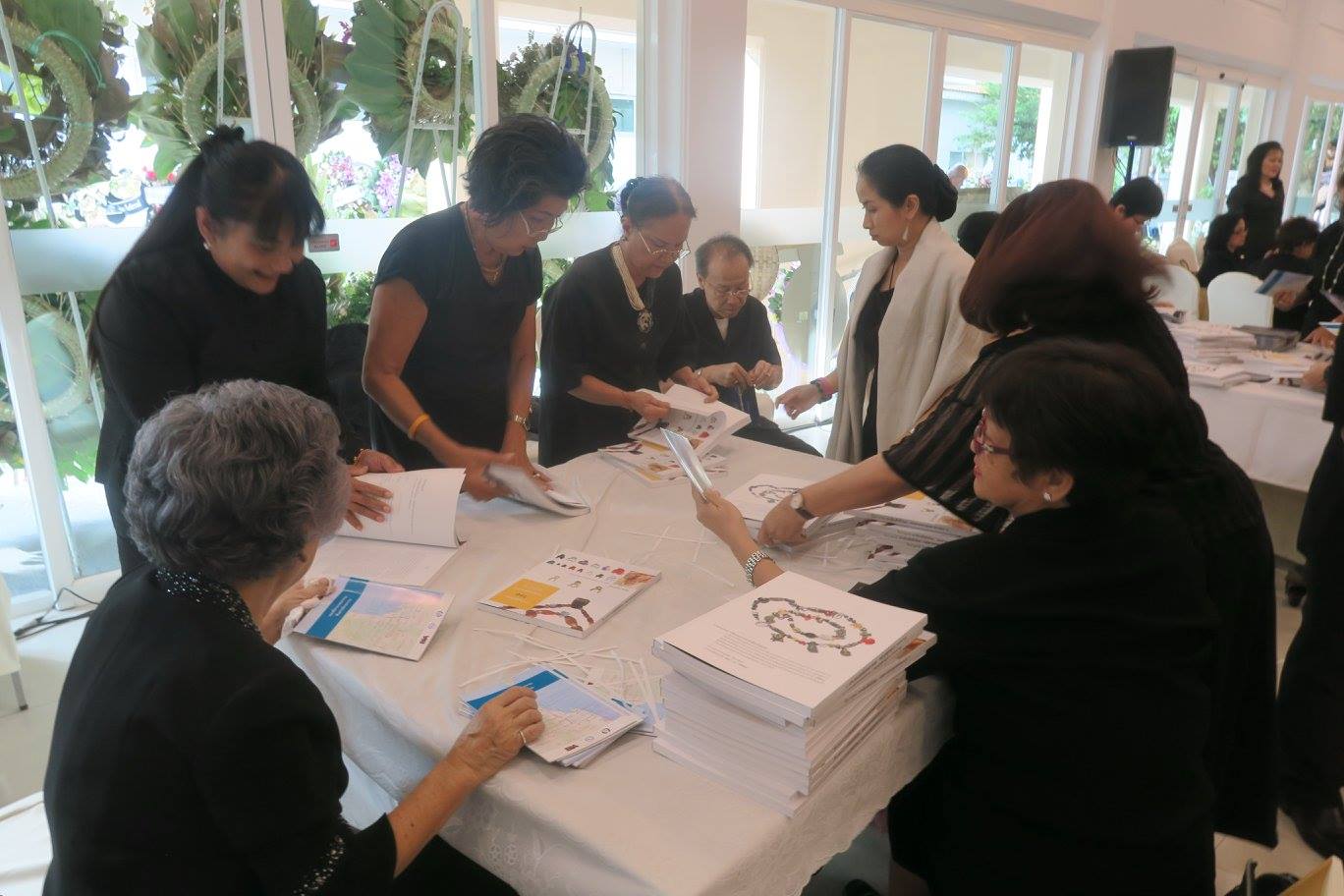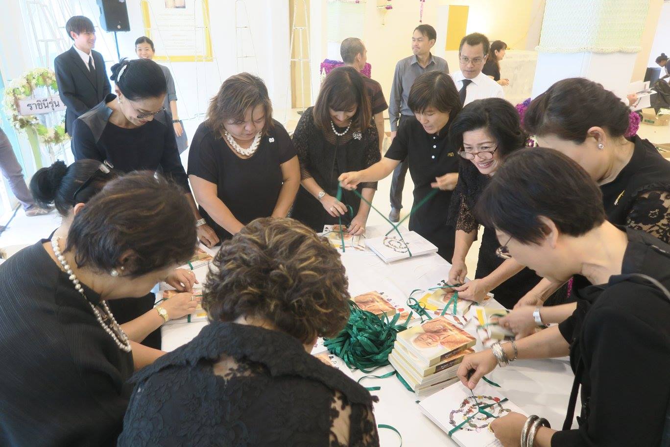 อันที่จริงวันนั้นก็ตั้งใจเรียกแขกมาช่วยตั้งแต่ต้น เพราะทางโรงพิมพ์ทั้ง ๒ บอกว่าเร็วที่สุด หนังสือจะมาถึงวัดก่อนเที่ยง โดยเล่มใหญ่นั้นยังจะต้องแปะเล่ม "ตามรอยธรรม ที่นคร...เมืองธรรม" ข้างใน แล้วยังต้องผูกริบบิ้นให้เรียบร้อย ซึ่งมี ๓ กองกำลังหลักมารอท่าเกือบ ๒๐๐ คน คือ เพื่อนราชินีของติ่ง หลาน ๆ ของแม่ แล้วก็ภาคีสวนโมกข์