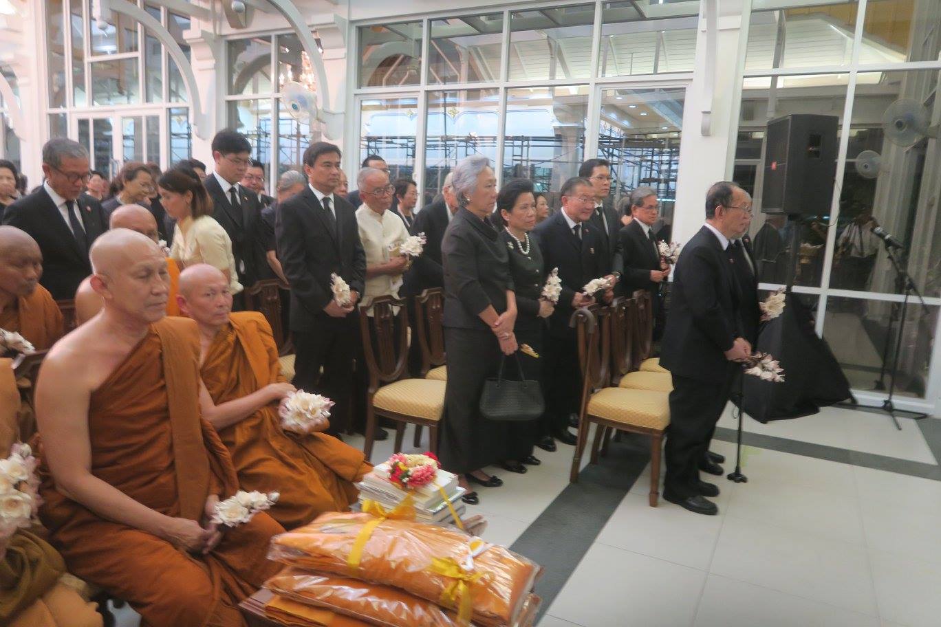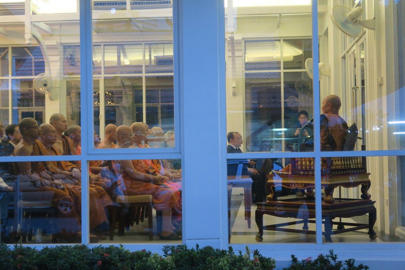 ในขณะที่แขกอื่น ดูได้ไม่ทั่วแม้จะเดินขอบคุณไปรอบหนึ่ง ที่แถวหน้าก็มี น้าอำพล คุณชายดิศนัดดา แล้วก็ อ.เสนาะ-คุณหญิงนงนุช อูนากูล ถัดมาเป็น อ.หมอประเวศ-อ.จันทพงษ์ ดร.ก็-วิรไท สันติประภพ ผู้ว่าแบ็งค์ชาติ กับคุณเจริญ-คุณหญิงวรรณา ศิริวัฒนภักดี คุณหญิงน้อย-พี่นา คุณปีติพงษ์ พึ่งบุญ ดร.ประสาร ไตรรัตน์วรกุล อดีตผู้ว่าแบ็งค์ชาติ คุณอภิสิทธิ์ เวชชาชีวะก็มาครับ เราให้พี่ตั้วเป็นคนเชิญผู้ทอดผ้าไตร เต้ยนิมนต์พระพิจารณาผ้า พี่ตั๋งกับต่อ เชิญผ้า พี่โตกับติ่งดูแลแขกและทั่วไป