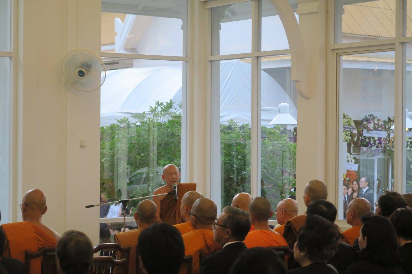 ปรากฏว่าพอถึงเวลา ๖ โมงเย็น คนก็เต็มไปหมดแล้ว ท่านไพศาลขึ้นปรารภธรรมโดยไม่มีพิธีกรรมใด ๆ แขกข้างฝ่ายพระ มีท่านอาจารย์สุธรรม สุธัมฺโม เมตตามาจากสกลนคร เจ้าคุณปัญญาฯ เจ้าอาวาสวัดชลประทาน เจ้าคุณมงคลฯ เจ้าอาวาสวัดญาณฯ ท่านจ้อยที่ท่านอาจารย์โพธิ์ให้มาแทน ท่านบุญชูผู้ถ่ายรูปท่านอาจารย์พุทธทาส ท่านคัมภีรญาณวัดป่าสุญญตาราม ประจวบ รวมถึงท่านทศพร หนุ่มช่างกลที่บวชในสายอาจารย์มั่นที่โคราชแล้วไม่คิดสึกก็มาครับ