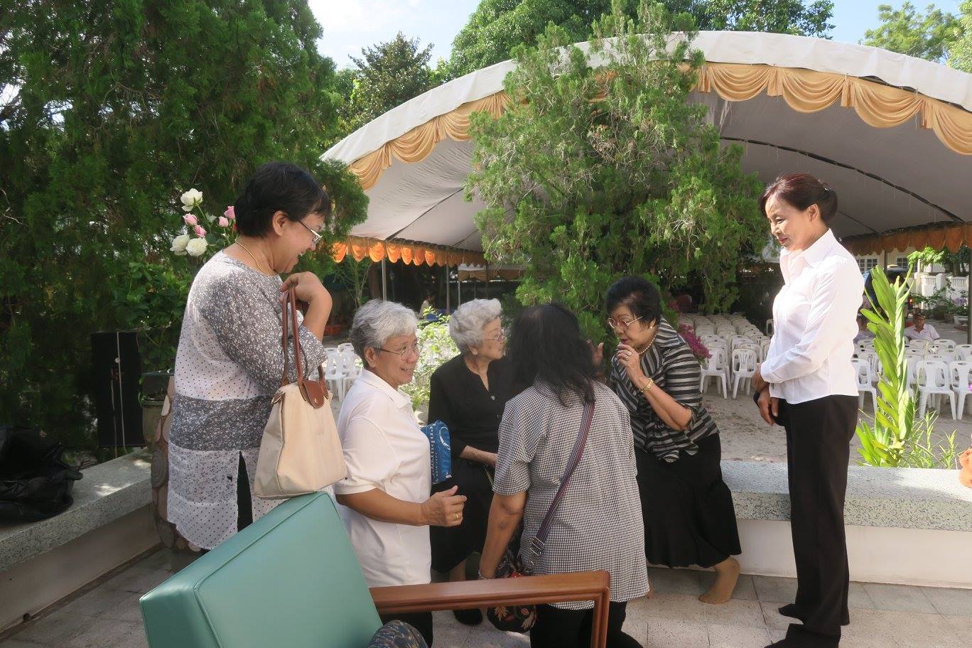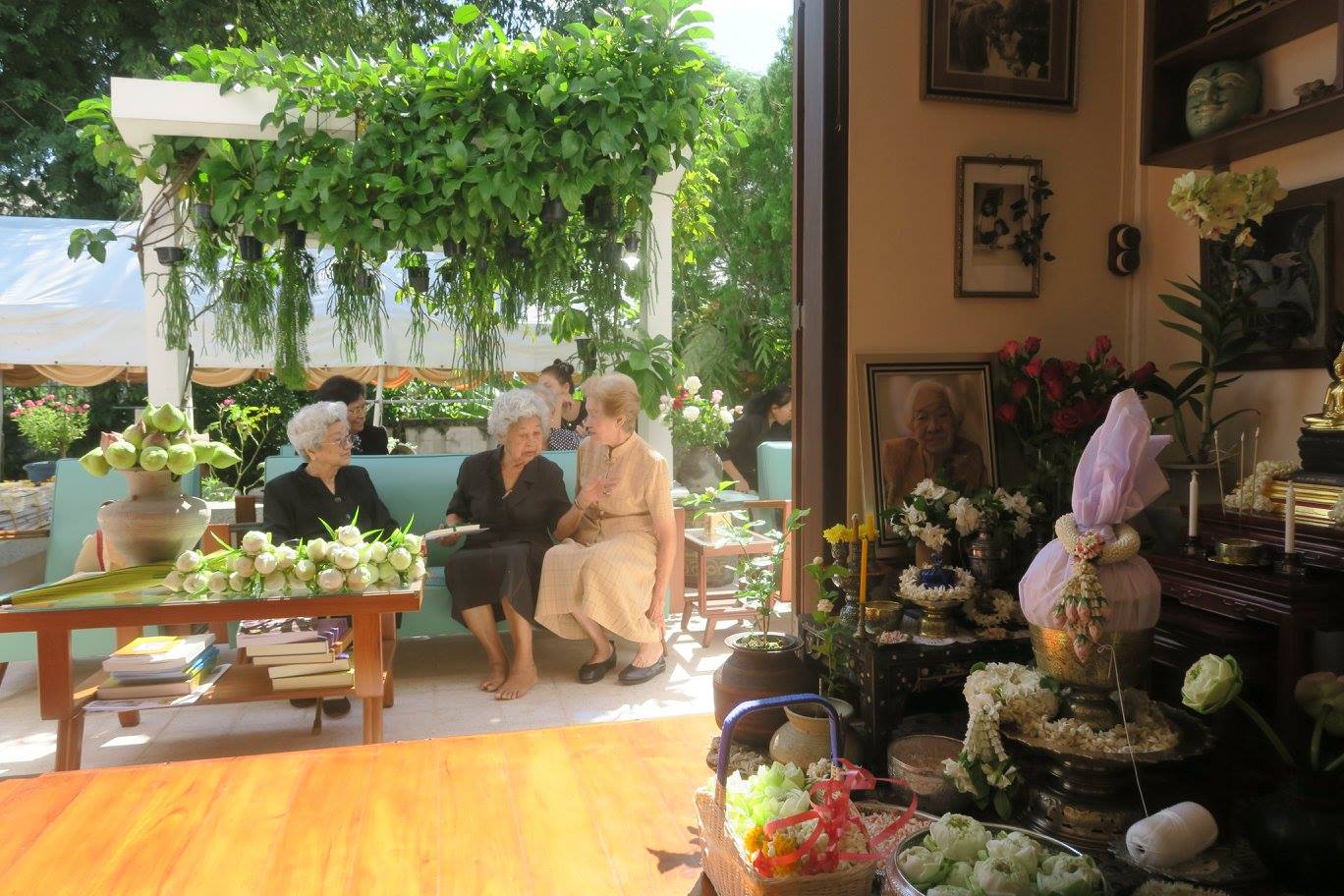 ส่วนญาติมิตรที่มาแรก ๆ นอกจากทีมกุ้งกับหมอเล็กและชมรมเหรียญชัย - คณะแสวงบุญ - ผู้สูงวัย ที่แม่เป็นสมาชิก และมาอาสารับกองบุญถวายวัดศรีทวีแล้วก็มีอีกหลายคณะจนจำไม่ไหว พวกคีรีวงขนผลไม้มาร่วมเยอะแยะหลายลัง ทั้งมังคุด เงาะ ลองกอง ทุเรียนที่แม่ชอบมาก ๆ ท่านผู้ว่าวิชมกับคุณนายก็มาเร็ว เต้ยเลยขอท่านช่วยดูแลต้อนรับท่านเจ้าคุณเทพฯ อุปัชฌาย์ของเต้ย อาจารย์รุจิรามาถึงก็ขอเข้ากราบแม่ บอกว่าตอนคลอดลูกคนแรก แม่เป็นคนสอนวิธีอาบน้ำลูกให้ น้าฉอ้อน เอาดอกไม้ให้ไปลอยอังคารมาเต็มตะกร้ากับขันเงิน น้าจงดีก็มาครับ รวมทั้งญาติจากเมืองจีนที่แม่เคยเล่าว่าตามมาทีหลังแล้วมาพักอยู่กับคุณตาที่หลังบริษัทก็มากันครบเลยครับ