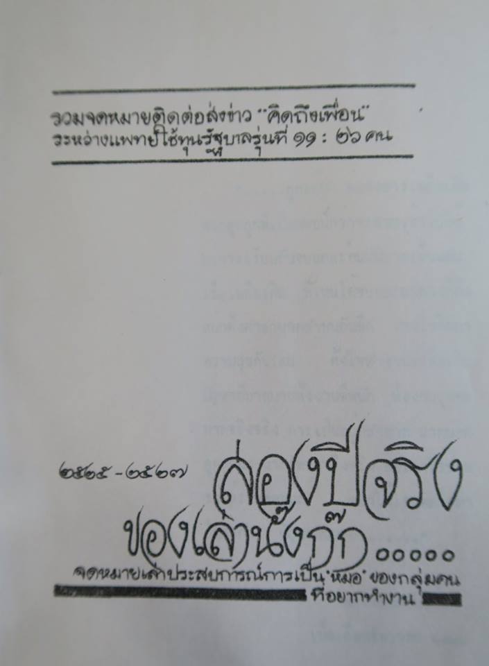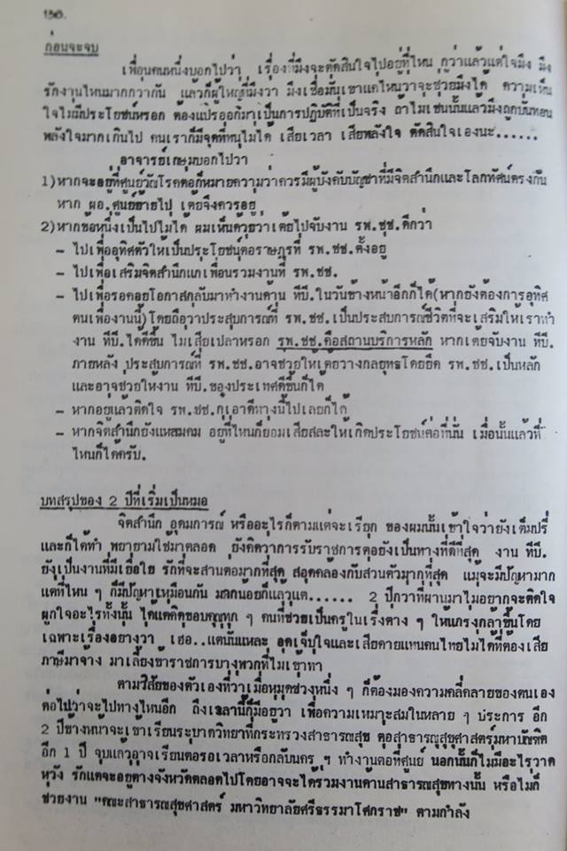 พอดีที่บ้านเพื่อน-นพพร พัฒนพรพันธ์ เขาเอาหนังสือเล่มนี้ที่ผมทำให้เพื่อน ๆ ในกลุ่มตอนจบการทำงานใช้ทุน ออกมาให้ได้ดูกัน ก็เลยได้อ่านผ่านตาทั้งภาพรวมและเรื่องที่ตัวเองสรุปไว้ หลาย ๆ อย่างก็ยังกะเพิ่งเขียน แต่หลาย ๆ อย่างก็เลือนไปมากแล้ว