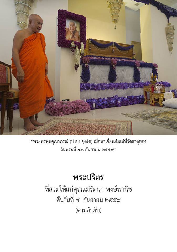 เราตกลงจัดที่สวนโมกข์กรุงเทพที่แม่มีส่วนร่วมสร้างกับพวกเรา โรจน์ที่เพิ่งกลับจากนำคระไปปฏิบัติกับพระอาจารย์สุธรรมที่วัดป่าหนองไผ่เมืองสกลได้ช่วยออกแบบทำเป็นหนังสือรวมคาถาที่สวดพร้อมคำแปลและอานิสงส์อย่างสวยงามตามเคยครับ ส่งโรงพิมพ์เมื่อสาย ๆ เขาบอกว่าได้พรุ่งนี้เช้าครับ