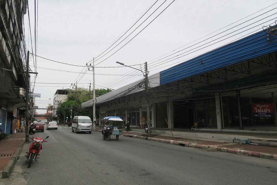 ตรงข้ามกำแพงวัดบูรณารามที่ทำเป็นตึกแถวทั้งแถบ