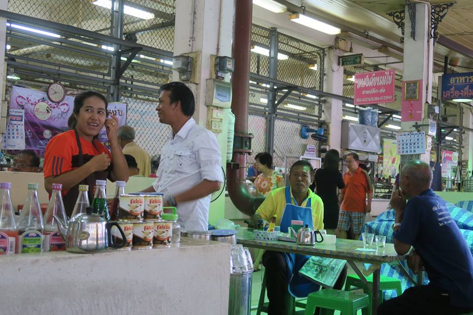 จากนั้นไปเปิดห่อนั่งกินที่ร้านน้ำชาริมตลาด