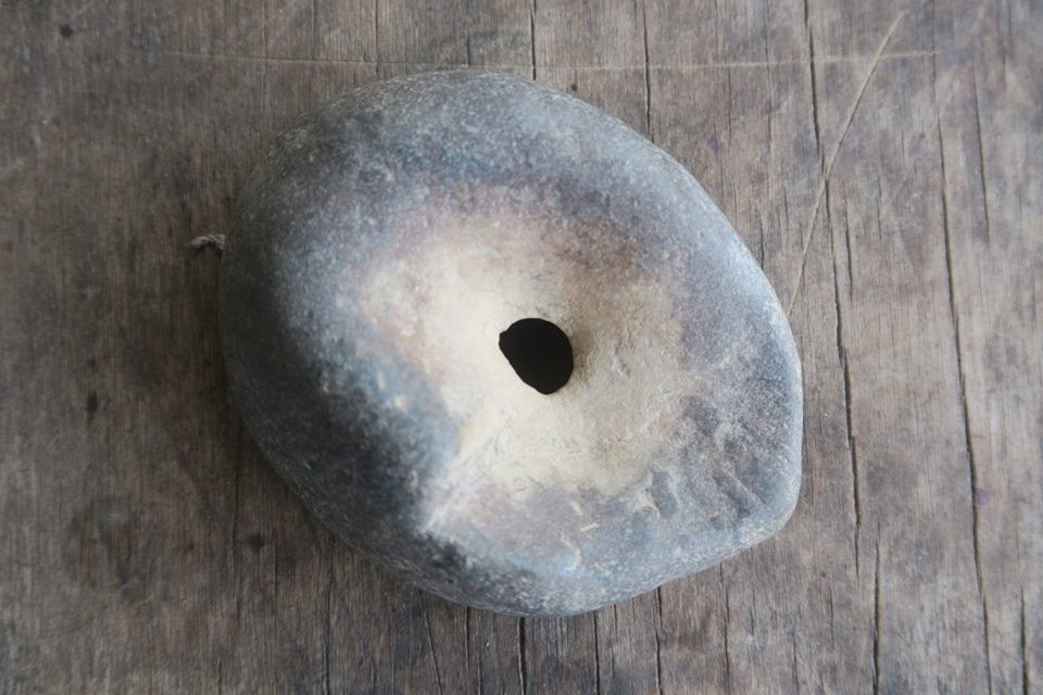 เช่นกันกับก้อนหินกลมมนมีรูกลาง อย่างที่พบของมนุษย์โบราณลึกถึงสมัยหิน