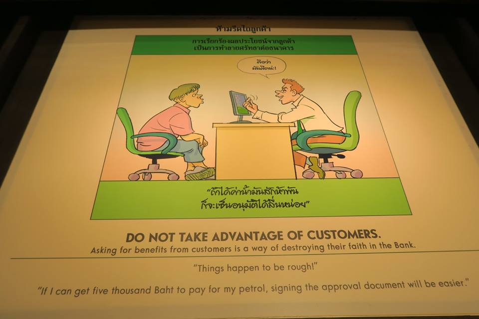 มีหลักคิดพื้นฐานและเบื้องต้นของ ธกส.หลายประการ รวมทั้งภาพการเสด็จเปิดของสมเด็จพระเทพที่ทรงวาดภาพรวงข้าวให้ไว้