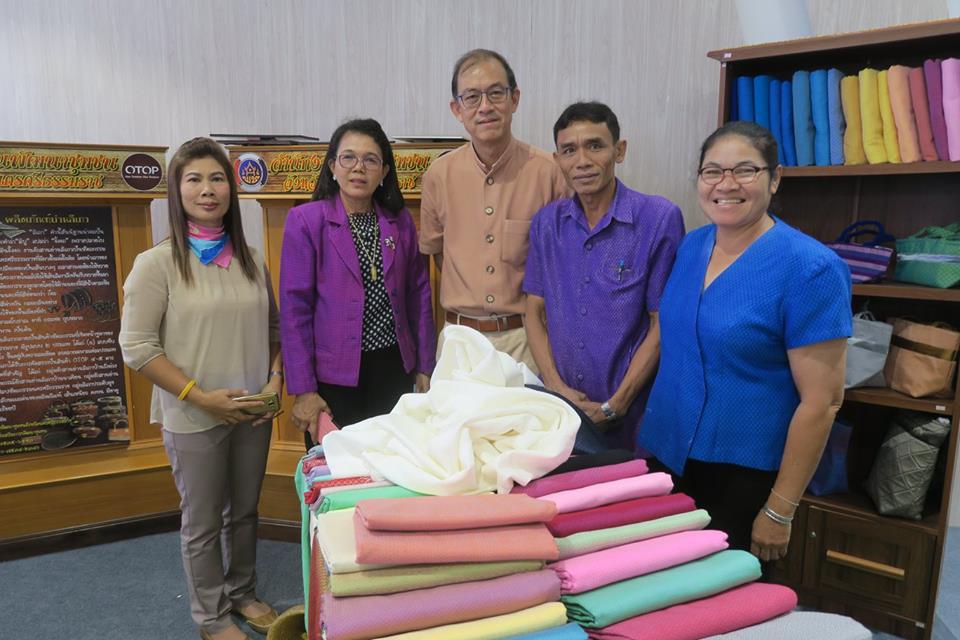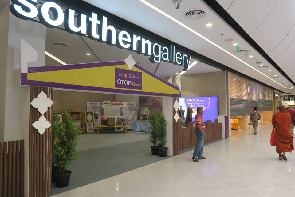 ๑) Southern Gallery ของพัฒนาชุมชนเมืองนคร รวมสินค้า Otop มานำเสนอ เจอชาวบ้านทอผ้ายกจากเนินมวงมากันหลายคน จึงอุดหนุนไปสองผืนแรก