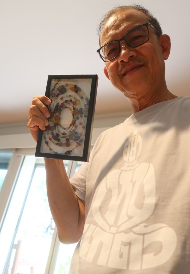 เส้นแก้วโมเสกมีลายนกยูงที่หัวนั้น ได้มาจากตะกั่วป่ากว่า ๑๐ ปี