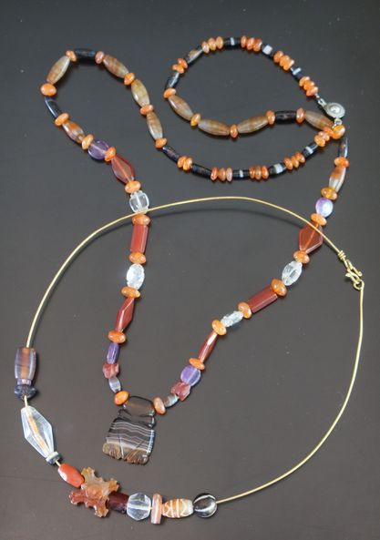 ๔) #ตรีรัตนอะเกต พบที่อู่ทองสุพรรณบุรี ร้อยบนสายลูกปัดทำใหม่จากหลายแหล่ง - อินเดีย - ปากีสถาน - ไทย
