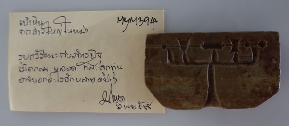 ๒) มีพบเบ้าหินสำหรับหลอมทำรูปตรีรัตนะนี้ด้วย