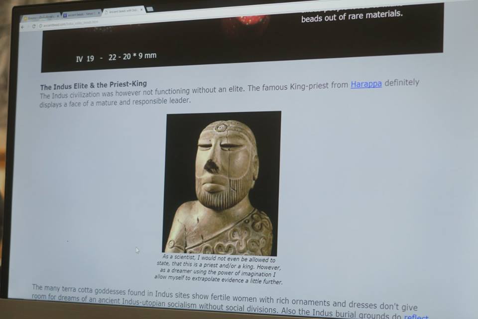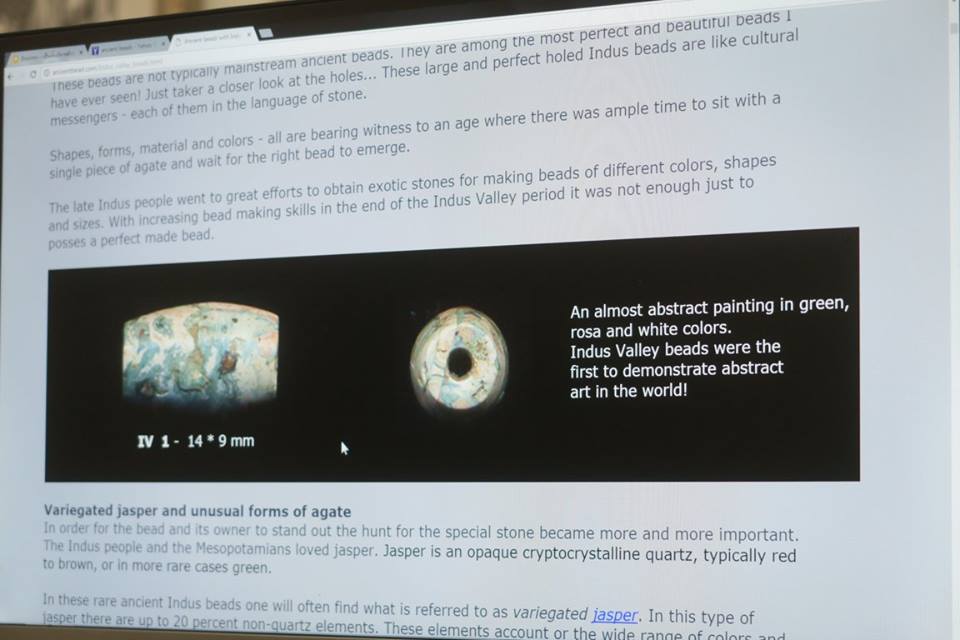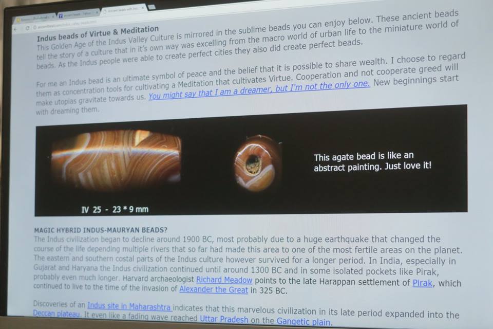 ๔) เขาได้เปิดเว็บเล่าให้ดูแต่ลูกปัดหินที่แหล่งอารยธรรมฮารัปปาแหล่งใหม่ในอินเดียและใหญ่ที่สุด เน้นถึงความงามของหิน สีและลายธรรมชาติ ที่เหนือกว่าลายเขียนเป็นไหน ๆ