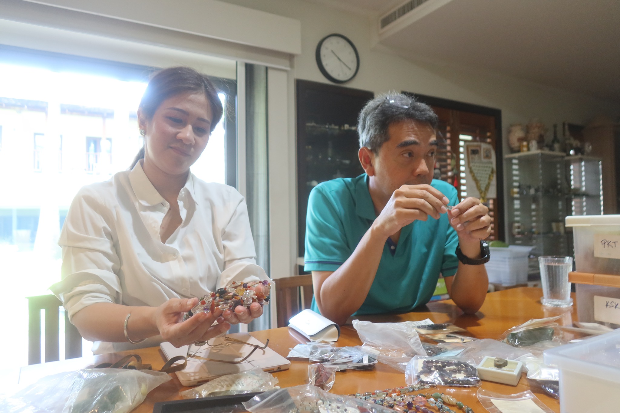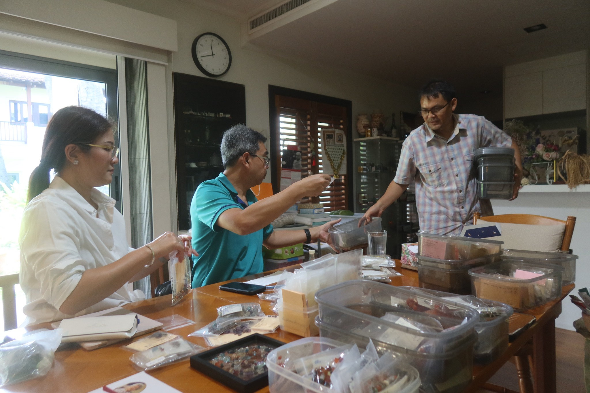 พร้อมกับลองนำตัวอย่างแก้วและหินในคลังออกมาให้ได้เห็นว่าประมาณนี้