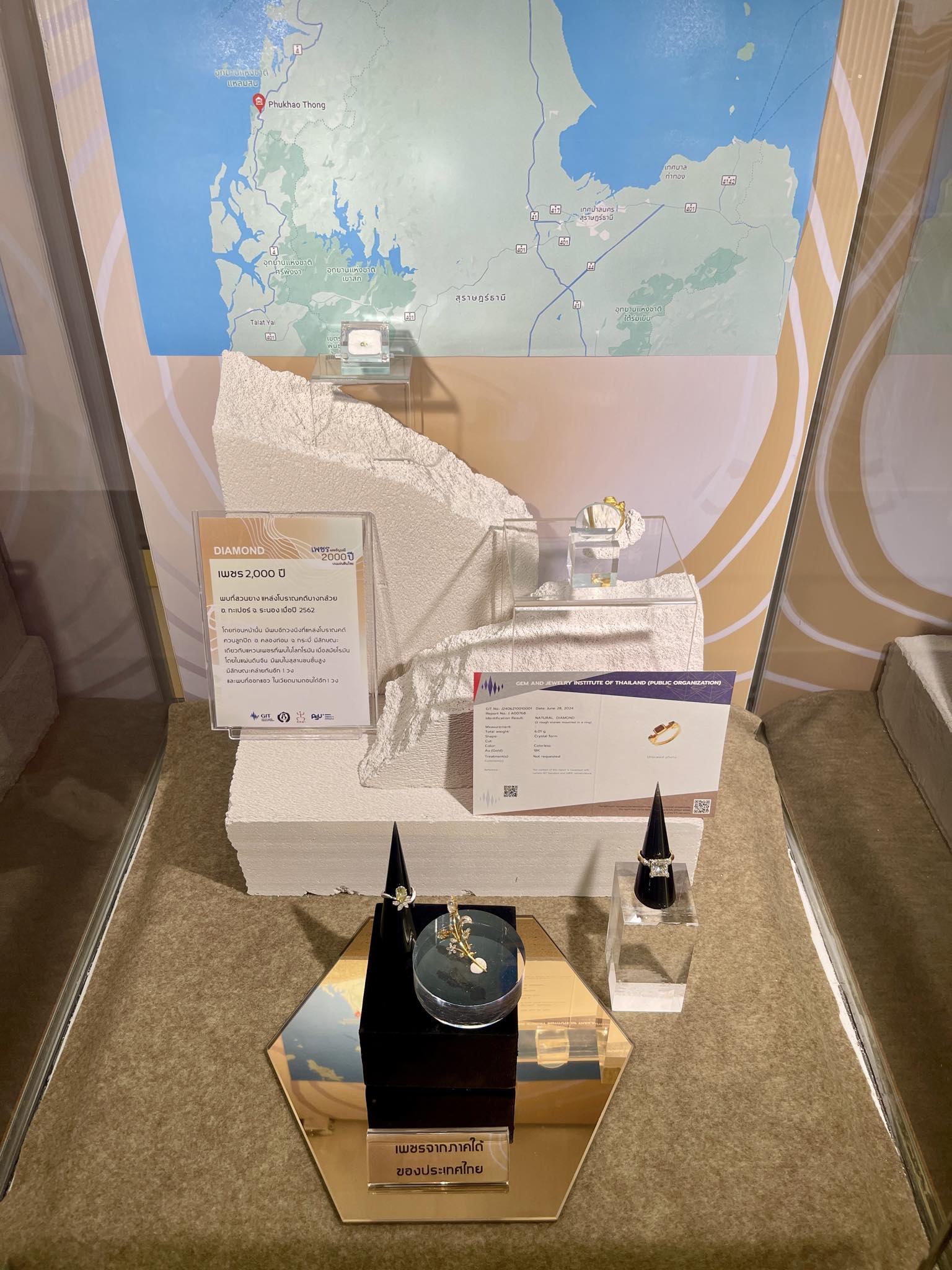 มอบเพชรอันดามันที่พบร่วมกับการทำแร่ดีบุกมาร่วมแสดงด้วย