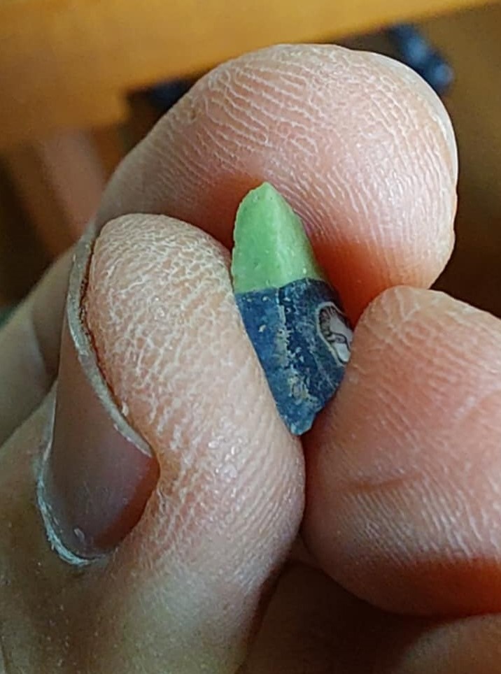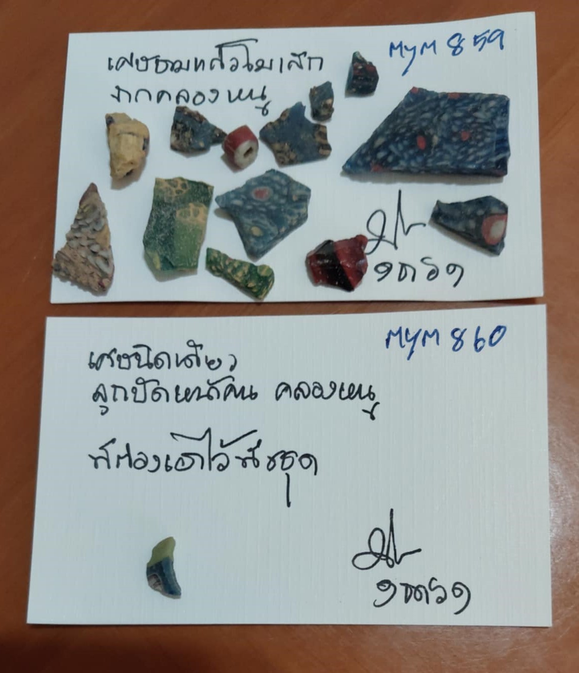 ยังเจอเศษแก้วแตกซึ่งเป็นชิ้นส่วนของลูกปัดโมเสกรูปหน้าคนแบบนี้ด้วย