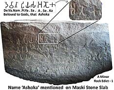 จนกระทั่งพบจารึกที่ Maski, Karnataka ที่ปรากฏที่ชื่อ 'อโสก' ต่อจากคำดังกล่าว