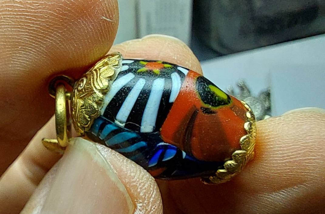 หนึ่งคือ #ทุ่นแก้วโมเสกสีฟ้าสลับดำขาว