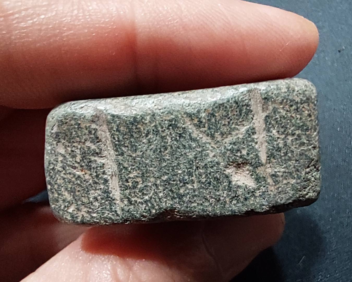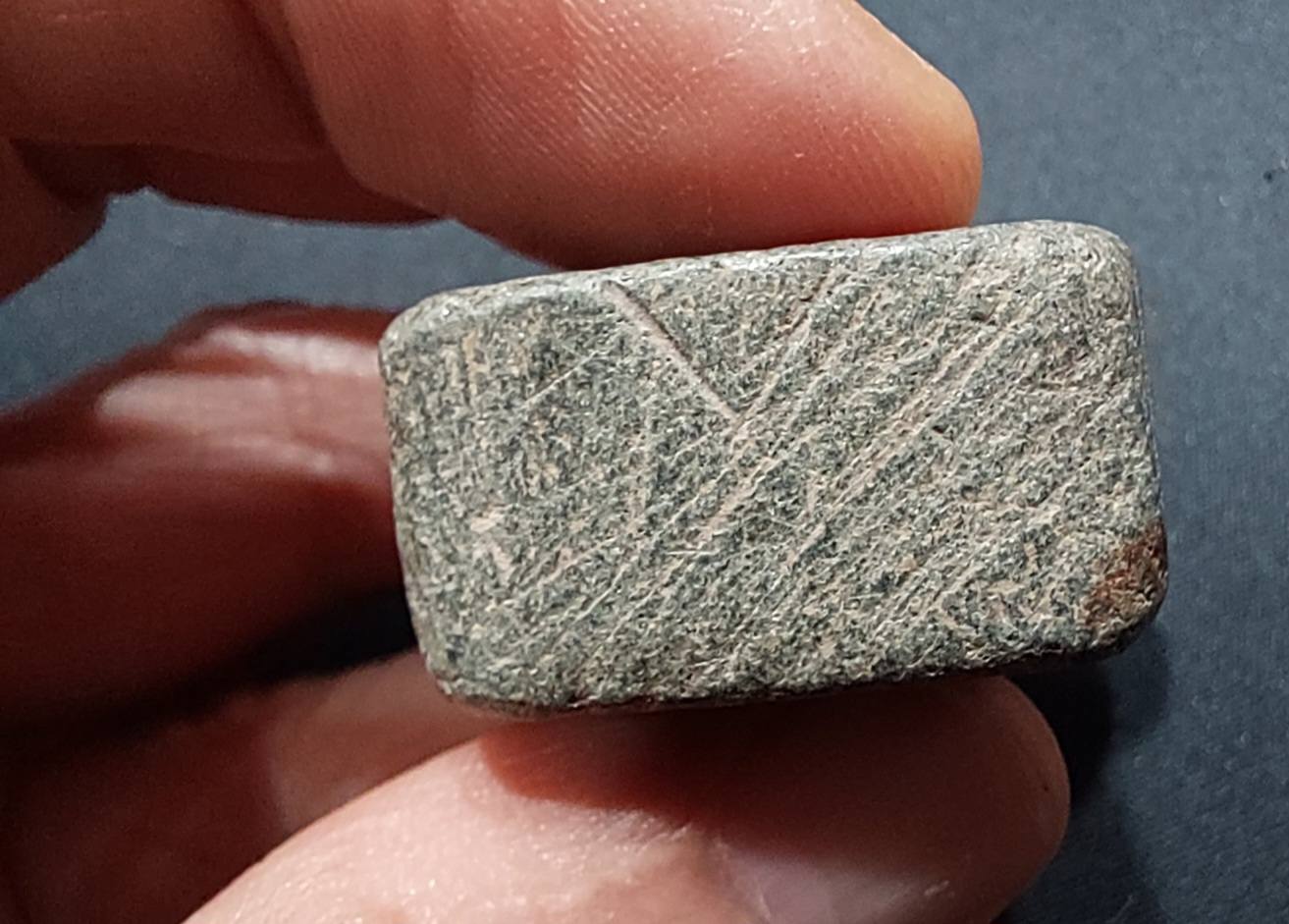 อันสี่เหลี่ยมมีหลุมนั้น บางด้านมีรอยขีดคล้ายเป็นจารึกอะไรไหมครับ Tain Gree ครับ