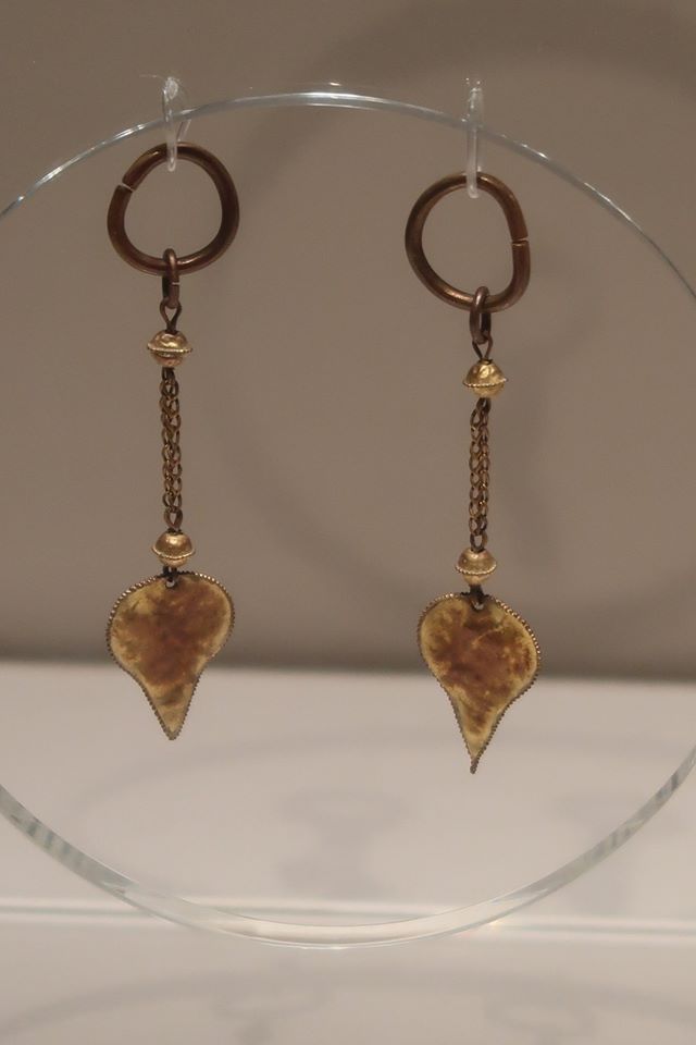 อาจเพราะอยู่กันใกล้ และเคยพัวพันกันมากของจากเกาหลีในพิพิธภัณฑสถานแห่งชาติญี่ปุ่นจึงมีอะไรหลายอย่างเป็นพิเศษโดยเฉพาะเครื่องทองคำชฎามงกุฎส่วนมาก มักห้อยลูกปัดรูปลูกน้ำเป็นพิเศษ แต่ที่ี้ไม่มีให้เห็น เห็นแต่ต่างหูทองคำโดยเฉพาะใบโพธิ์ คล้ายกับที่พบในไทยเราเหลือเกินครับ