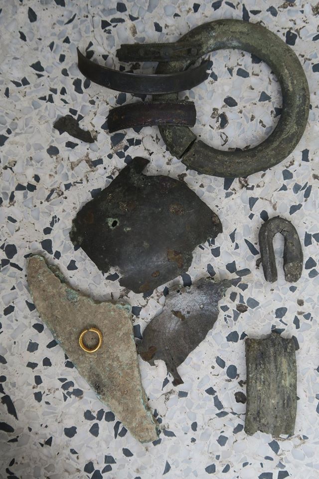 ภาพสิบเอ็ด-สิบสาม เจอกลุ่มโลหะหลงอยู่ถุงหนึ่ง มีทั้งกำไลหลายรูปแบบ กับเศษภาชนะ ชิ้นส่วนแผ่นสำริด แต่ที่พิเศษคือ มีตุ๊กตาตัวหนึ่งเหลือแต่ตัว แล้วก็แผ่นโลหะกลม ๓ อัน มีลายบนหลังแตกต่างกัน แล้วก็ต่างหูทองอีกอันหนึ่ง ดีที่เมฆกับหมอกไม่เอาไปเล่นเสียไกล