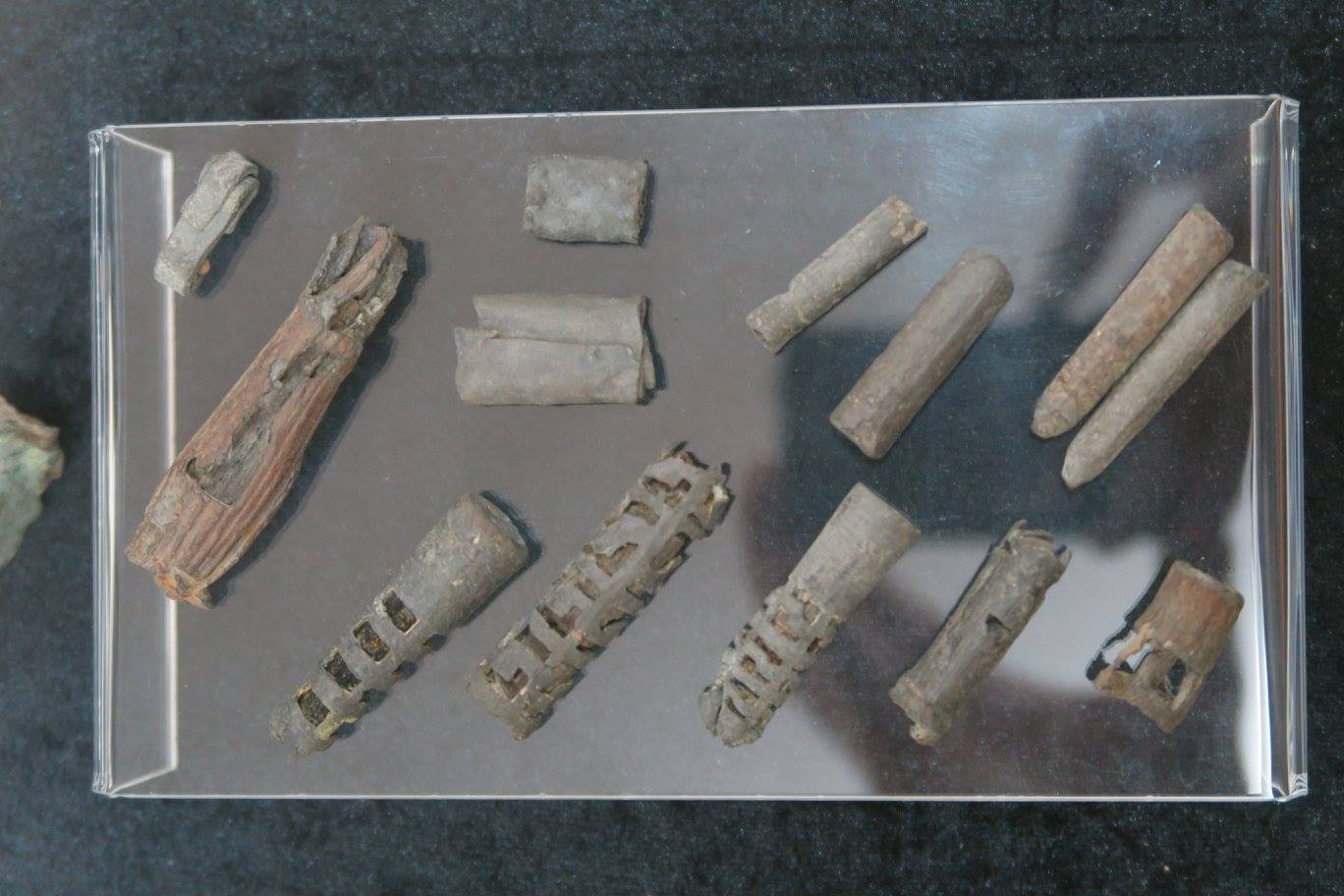 ๓) ชิ้นส่วนโลหะที่ไม่รู้คืออะไร เช่น ที่เป็นหลอดและมีช่องว่างอย่างตะกรุด กับแหวนที่มีหัวหมุนได้ เคยมีผู้เรียกว่าเหรียญหัวกุญแจโรมัน แต่ถามนักวิชาการต่างประเทศ ล้วนบอกว่าไม่เคยเห็นหรือรู้จัก